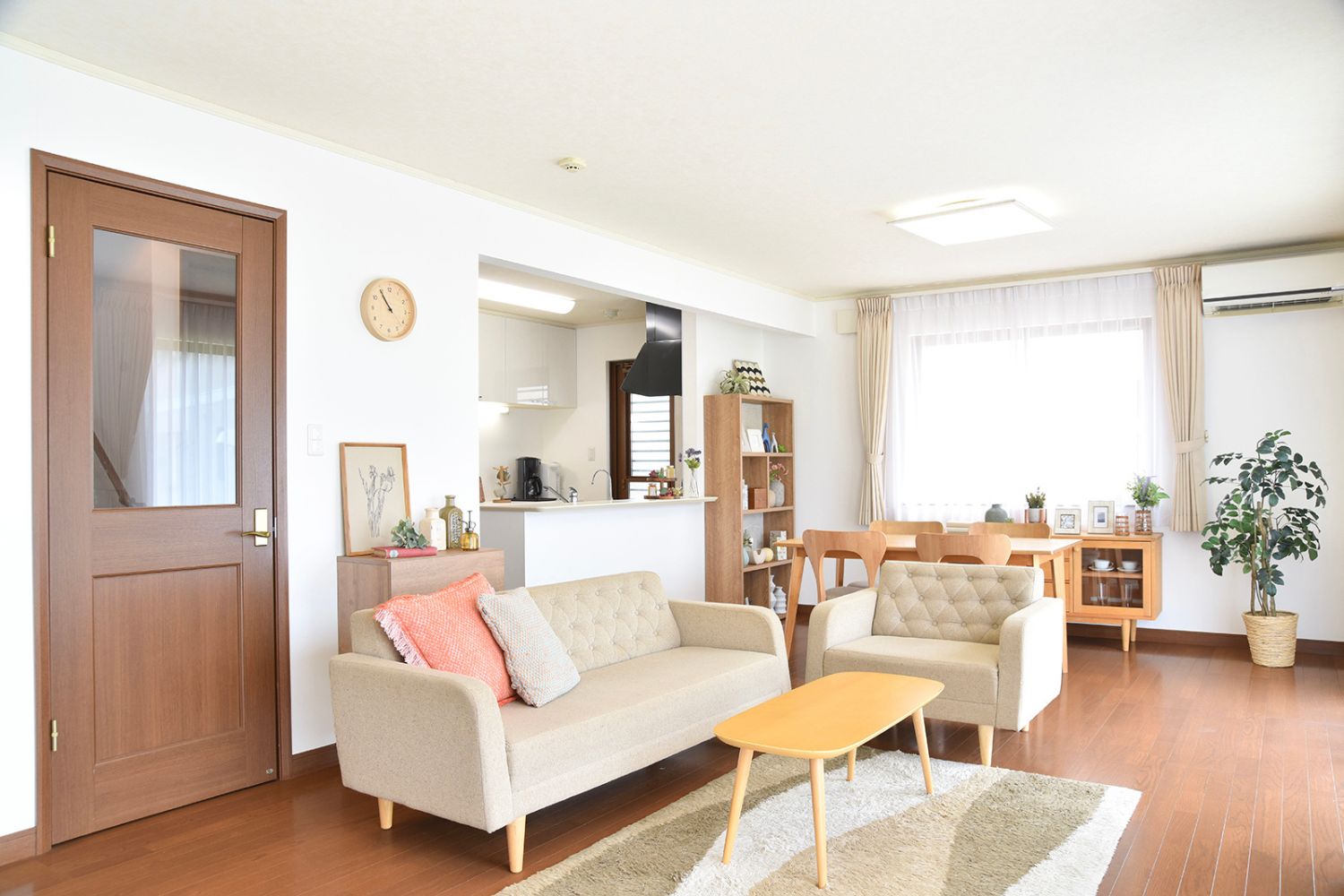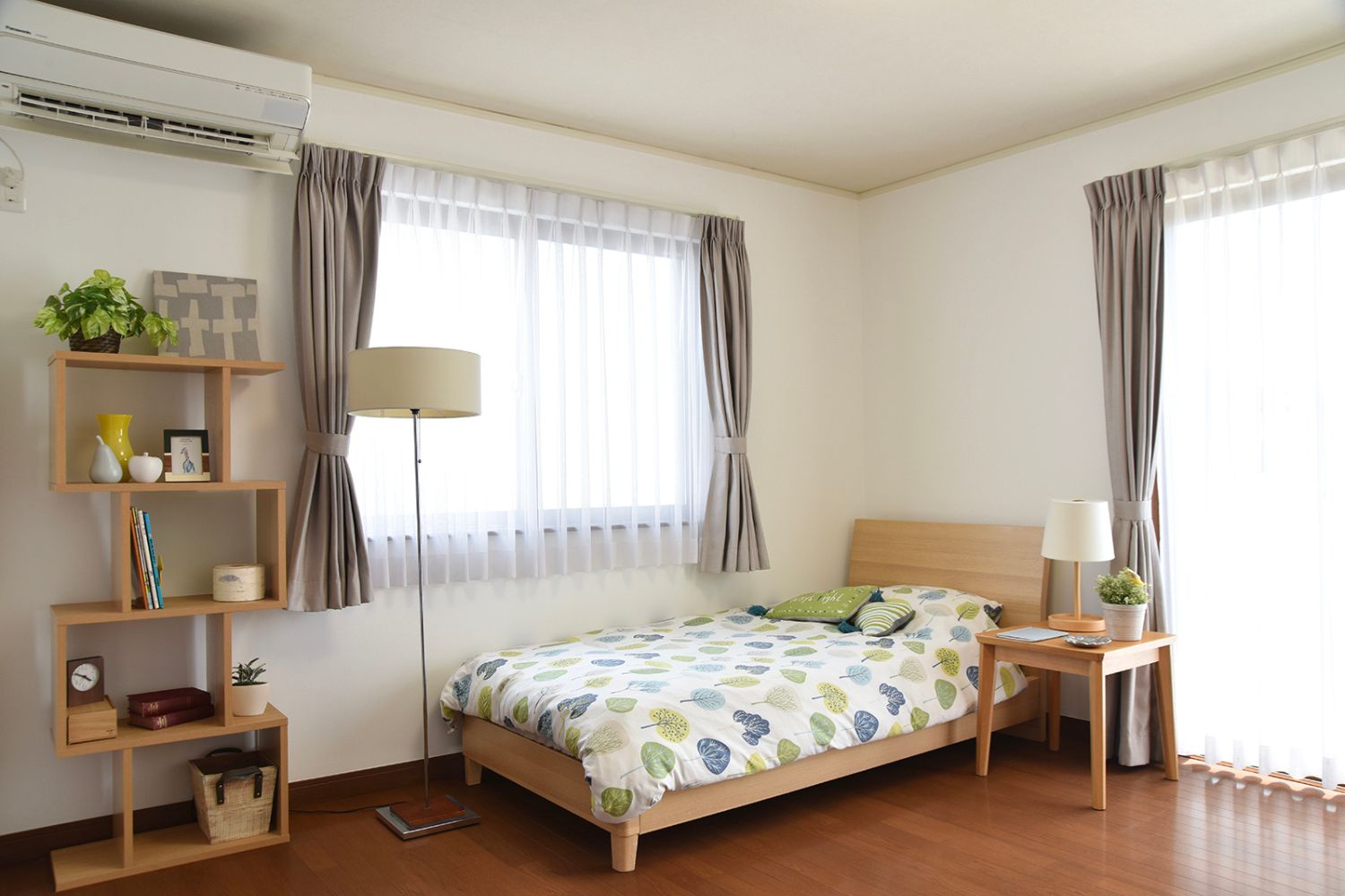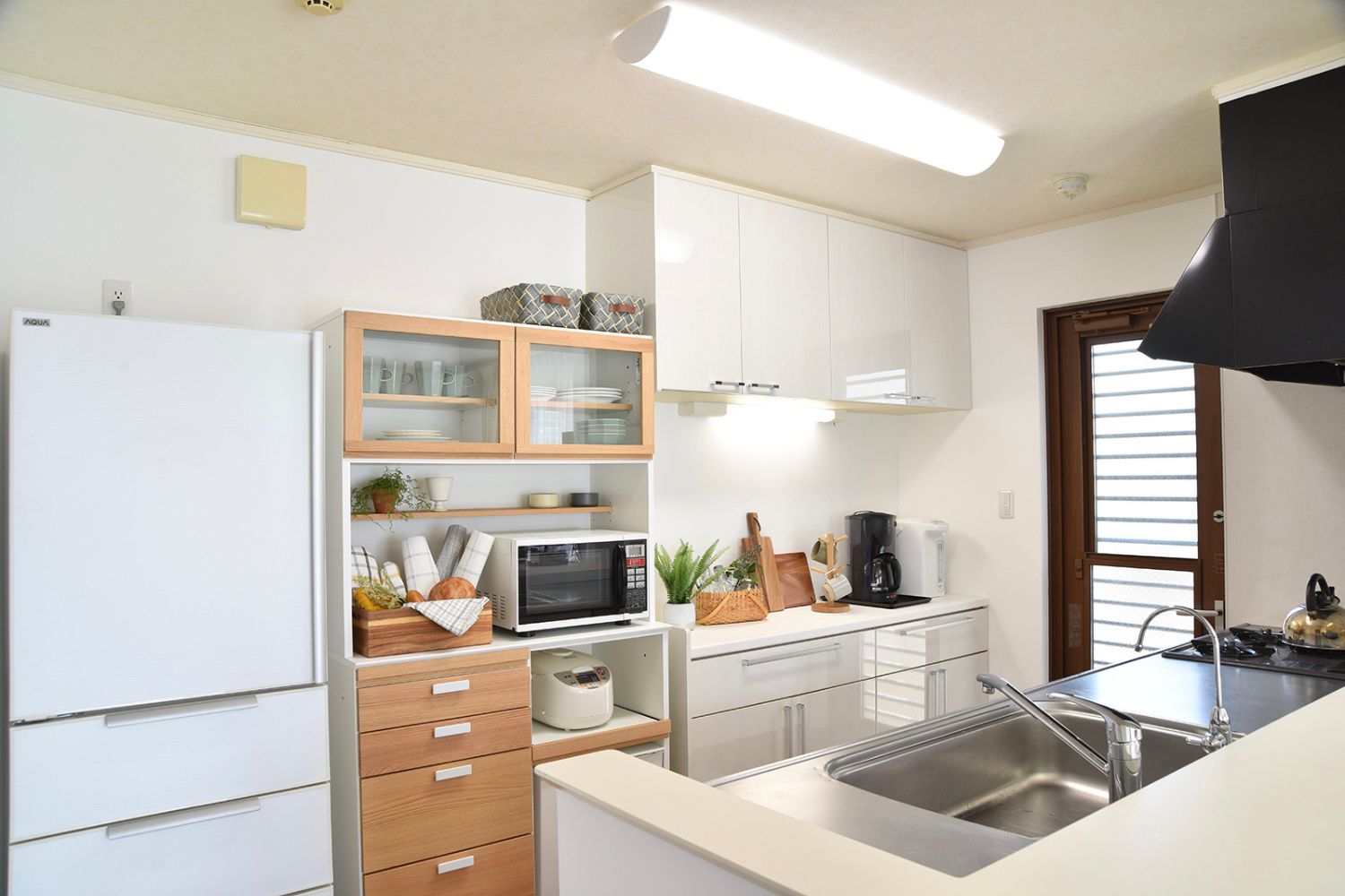 閑静な住宅地にある自然光たっぷりのの庭付き2階建て一軒家ハウススタジオです。対面式キッチンから続く、陽当たり抜群のリビングダイニング。程よい広さと明るさが、幸せな家族のワンシーンを創ります。2階には学習机のある子ども部屋と、メイクルームが2部屋ございます。