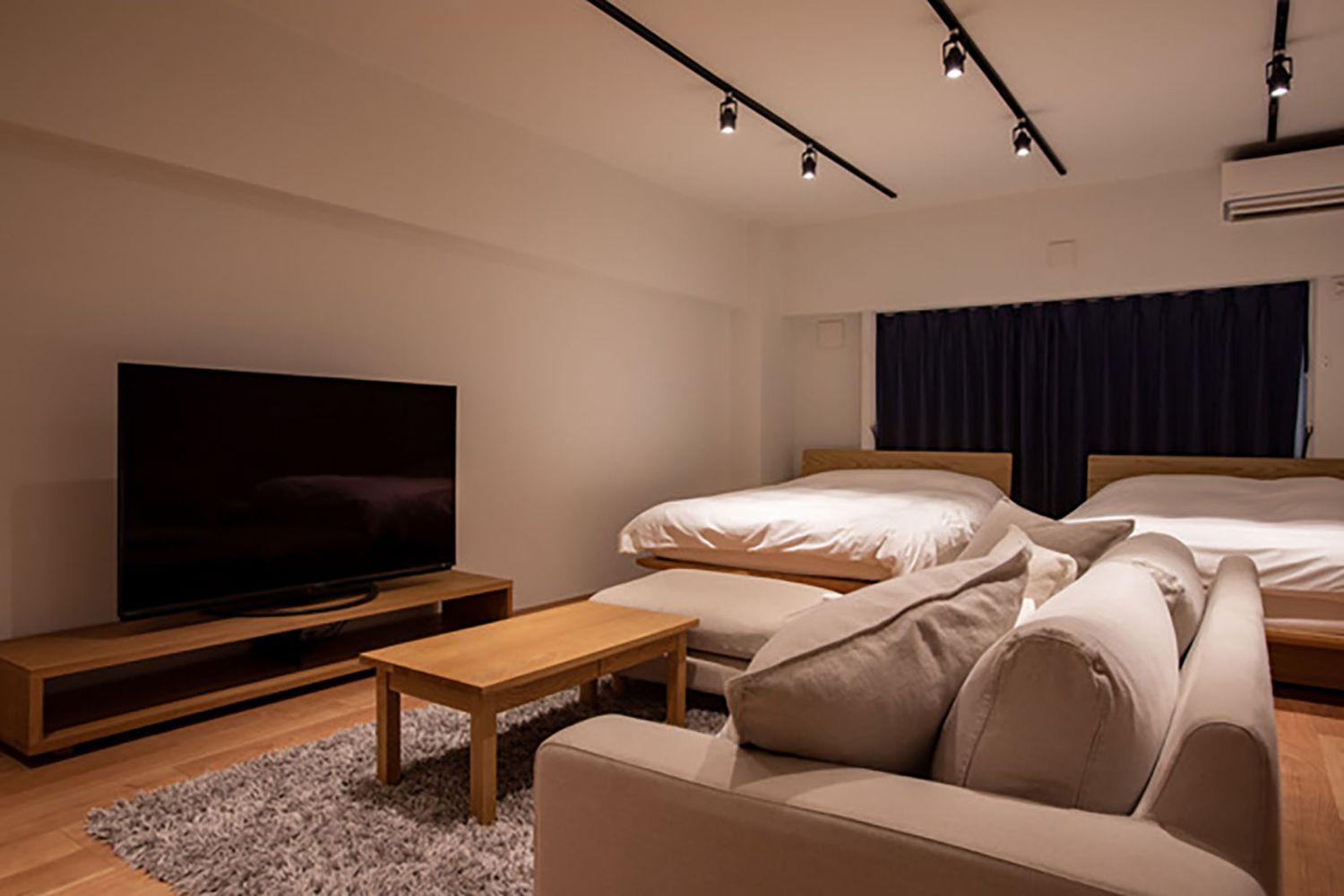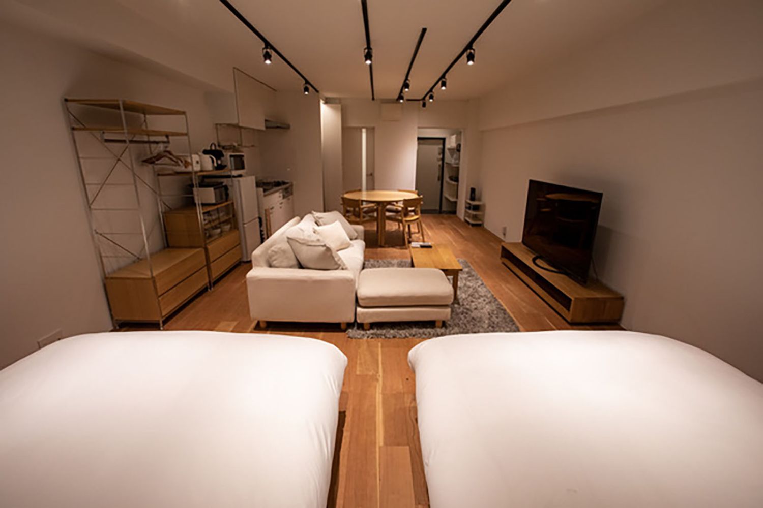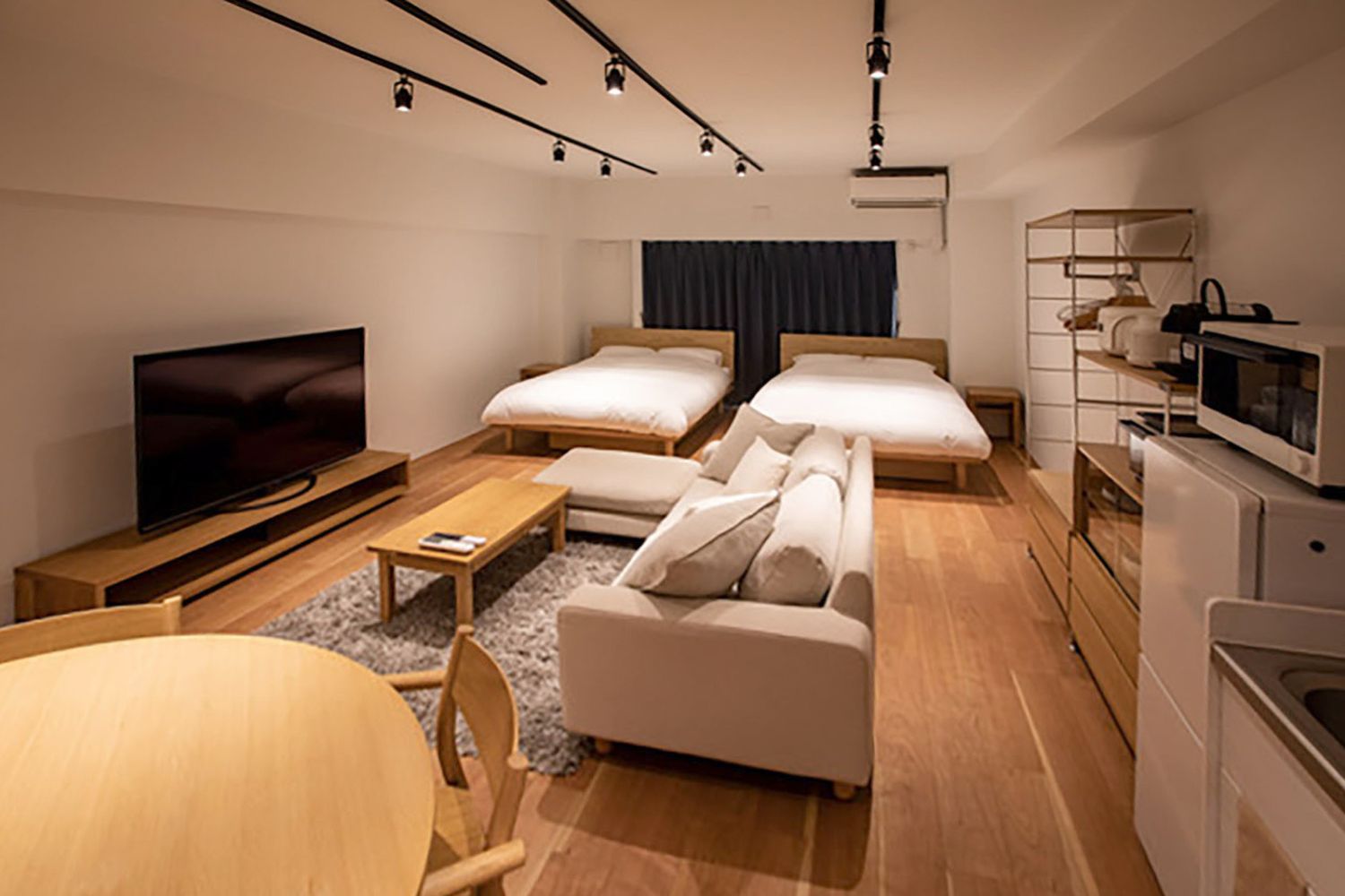 普段は民泊で使用されている部屋を撮影場所として貸出しています。カップルの同棲、OLの1人暮らしなどの設定におすすめな23畳の広々ワンルームスペースです。家具や家電など全て使用可能。また同じ建物内に別物件がございますので、空いていれば数部屋まとめて借りることもできます。