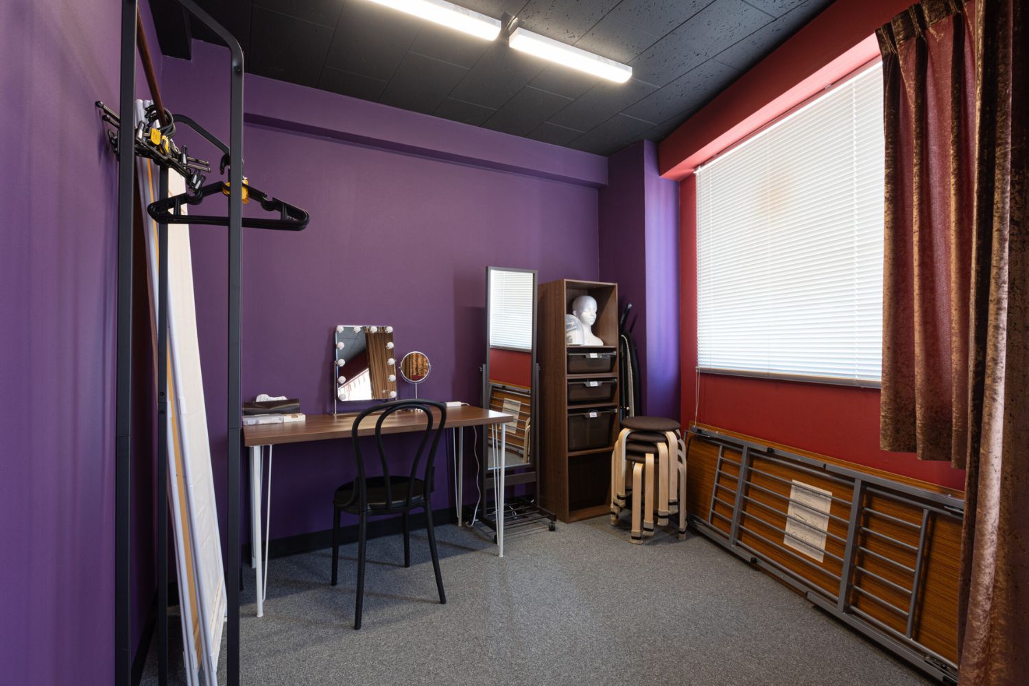 テーブル&椅子の揃った明るい 北欧風インテリアの控室と、ソファーの揃った落ち着いたミッドセンチュリー風の控室を完備しております。ドレッサー3席と更衣スペースをそれぞれ備えついており、楽屋・控室としてご利用いただけます。またシーン撮影などのスペースとしても、利用可能になりますので、楽屋・控室のシーン撮影にもおすすめです。お気軽にご相談ください。