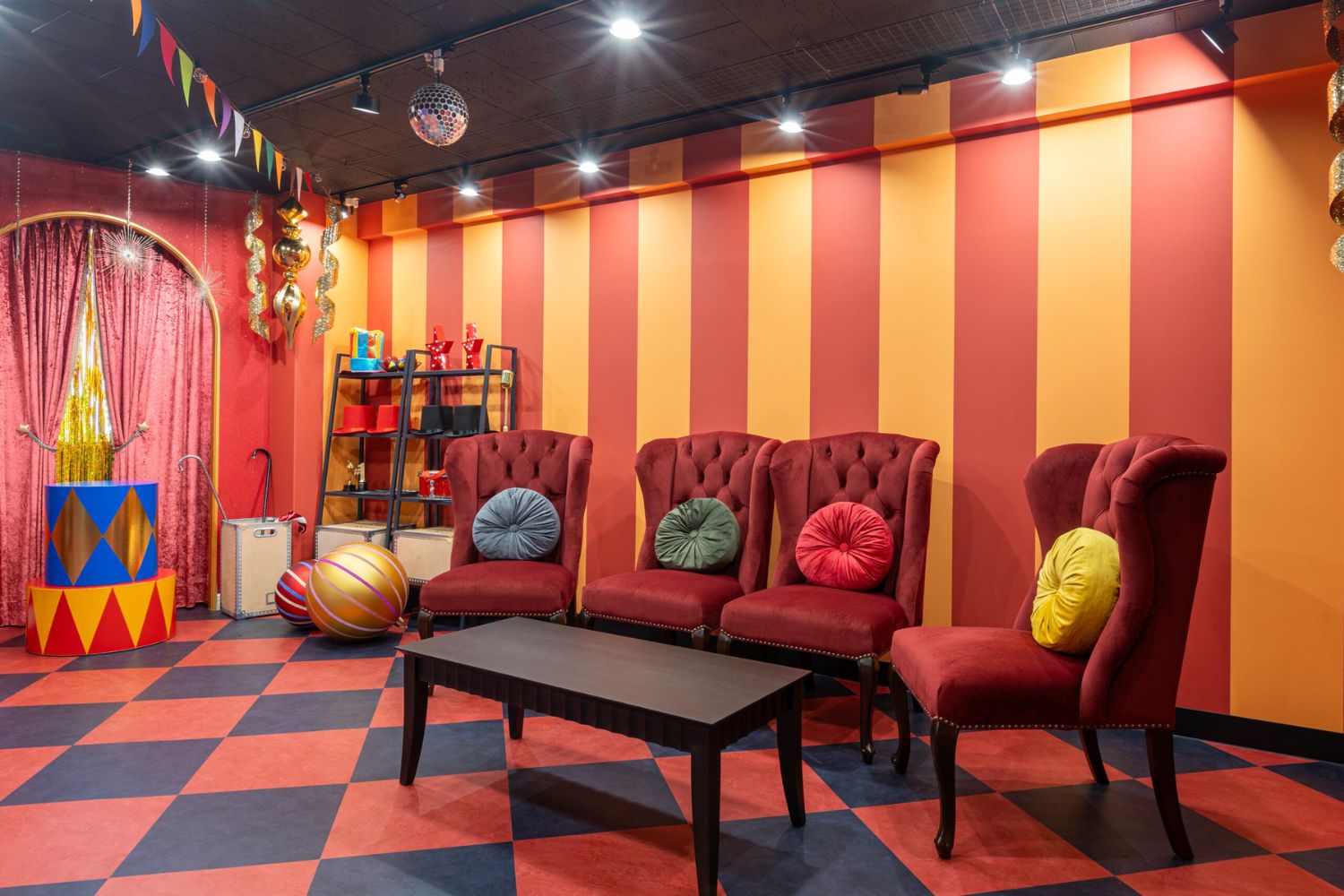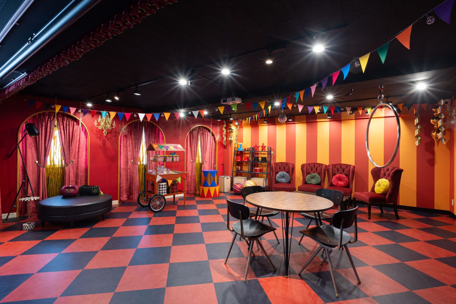 サーカス&シアターがコンセプトの煌びやかなスタジオです。舞台風のカーテンやプロジェクター、ミラーボール、象のオブジェやお立ち台などが揃ったユニークな空間で 独創的なシーンの撮影が可能です。