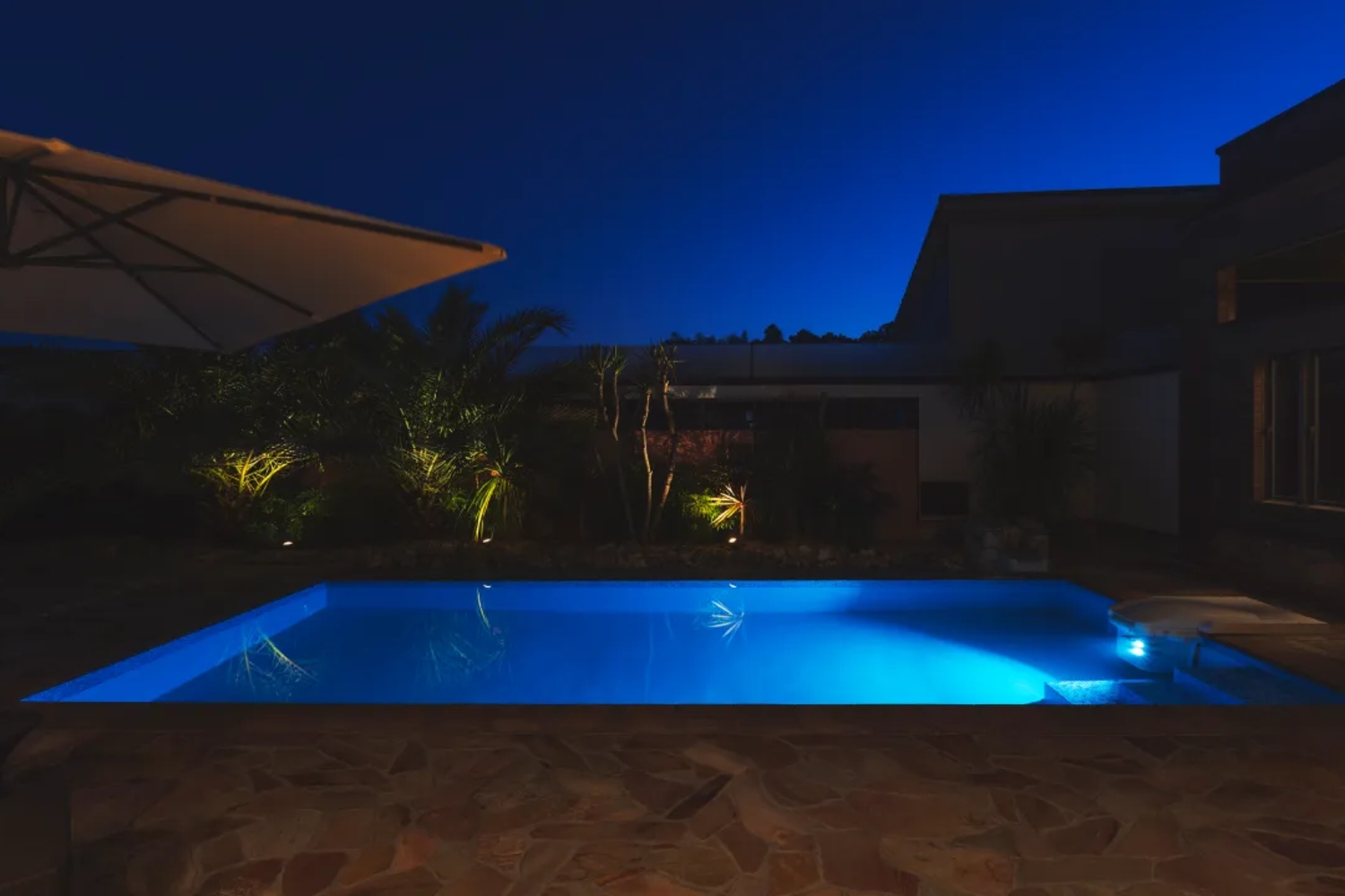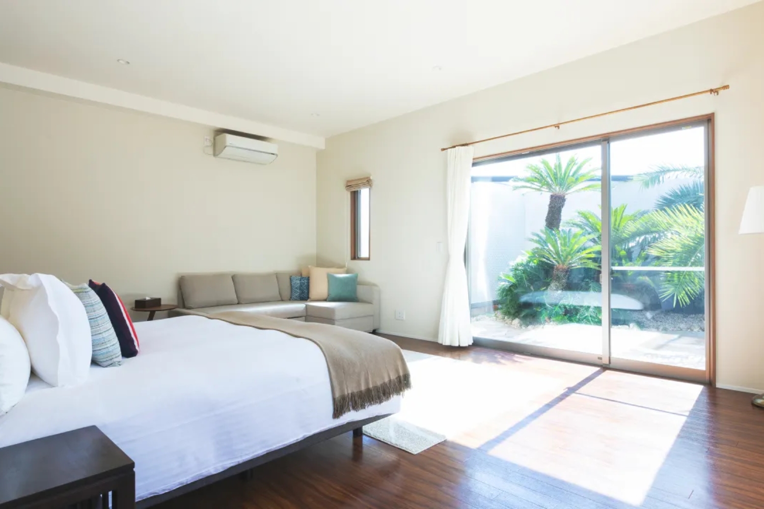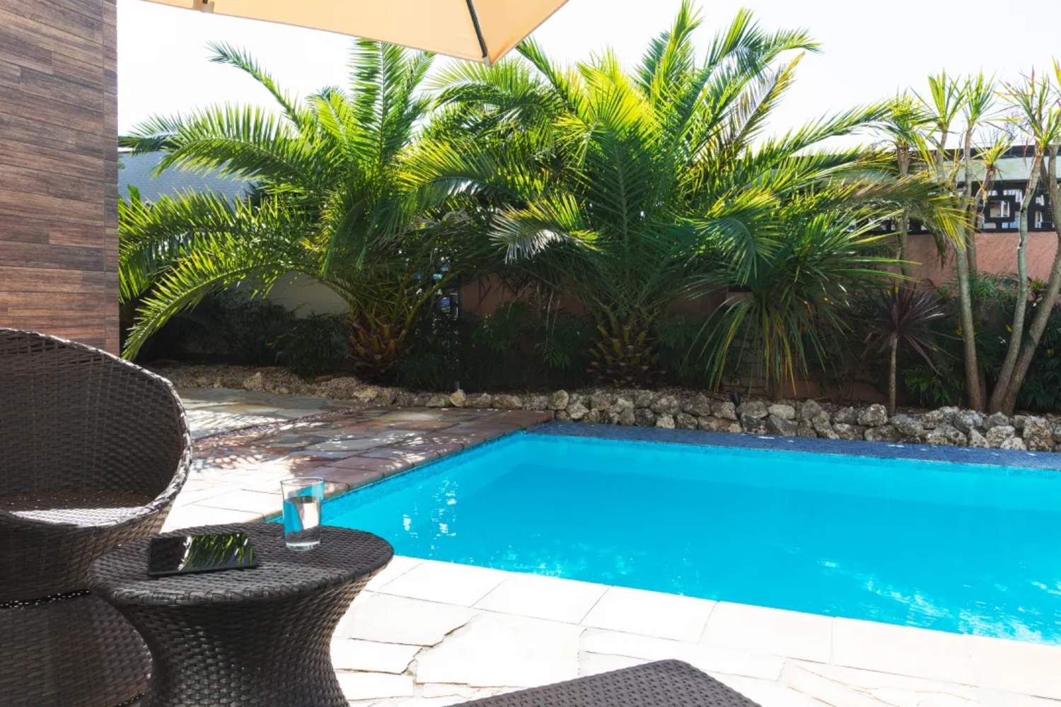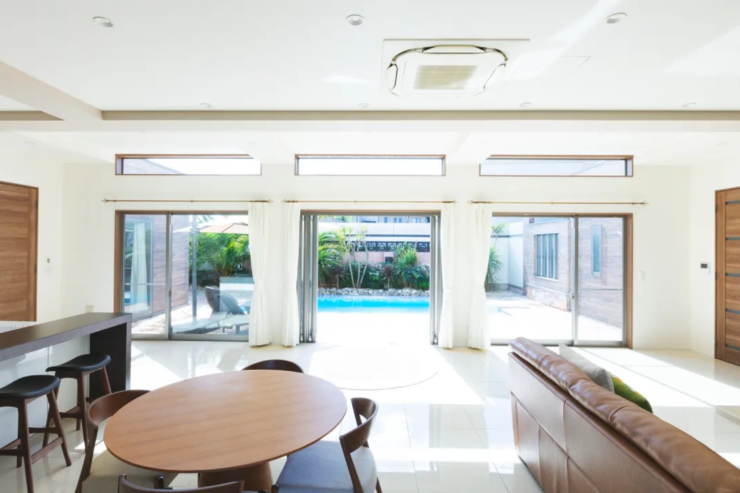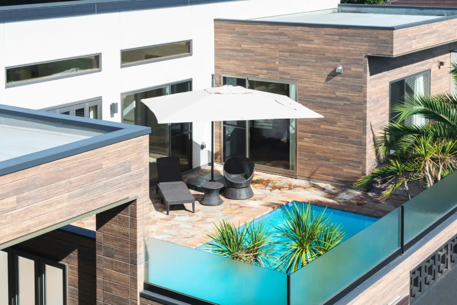 椰子の木が生い茂る南国リゾートそのまま!大型プールに、バレルサウナを完備する一棟貸切ラグジュアリー別荘