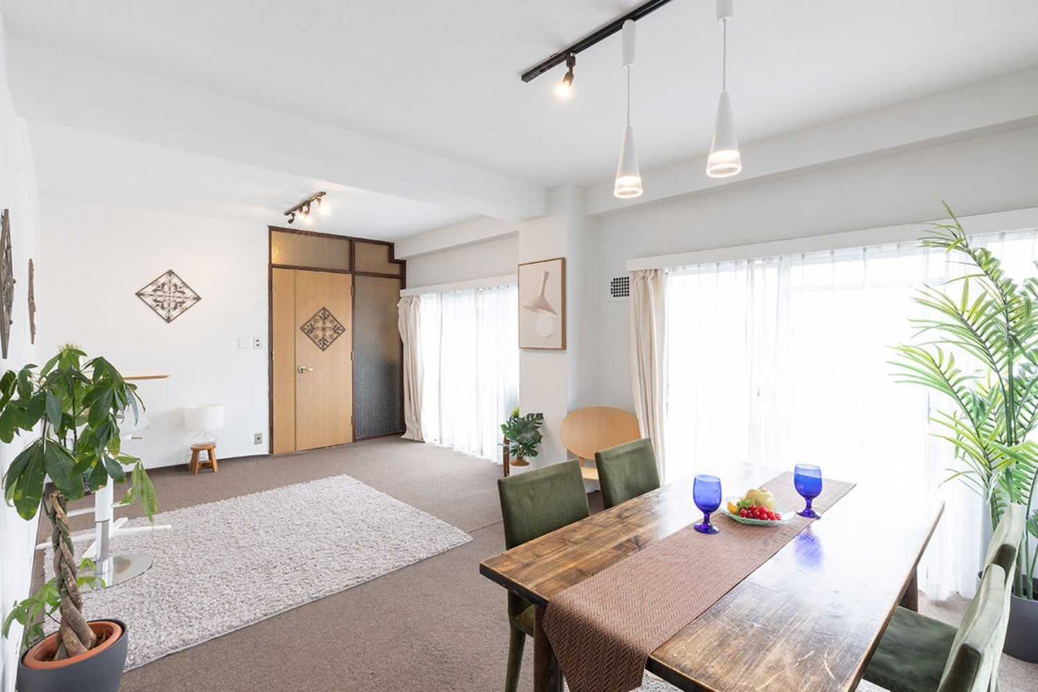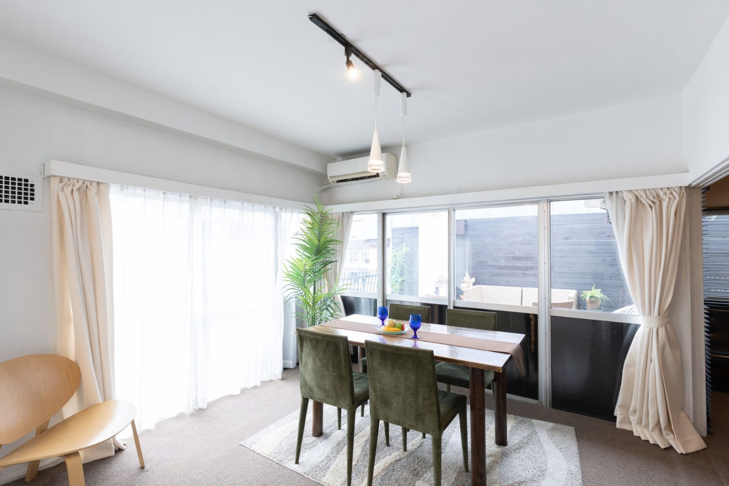 部屋には仕切りが無く、多彩な用途でご利用できる1LDKスペースです。ソファーとダイニングのスペースが分かれており、シーンに合わせて使い分けできます。また異国のオシャレ雑貨が装飾されており、ハウススタジオ独特の印象を感じさせません。開放感抜群のルーフバルコニーも利用でき、ドラマ、映画、CM、再現ドラマなどのシーン撮影から、バラエティ企画など幅広くご利用くださいませ。