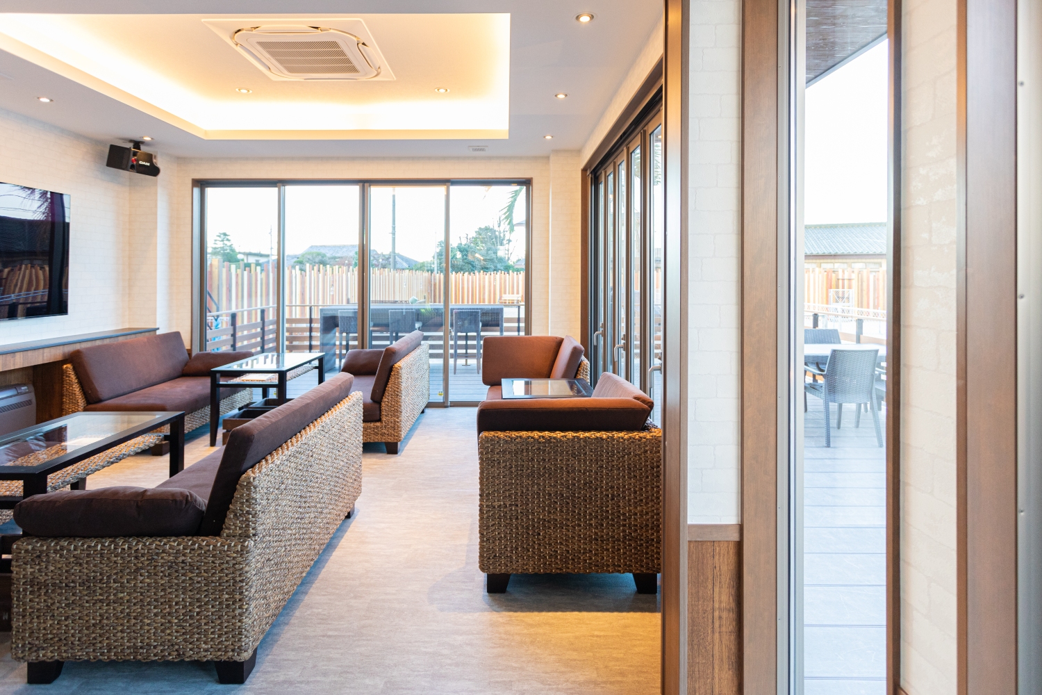 大型犬も楽しめる広々ドッグランを併設しています。ワンチャンなどのペット関連の撮影するときに、カフェシーンとドックランシーンをまとめて撮れるのが魅力です。ヤシの木やウッドデッキなど映えるスポットも揃え、また照明も完備しているので夜間撮影も可能です。また50種、1500頭以上の幅広い愛犬達のデータベースへの登録ございますので、撮影協力の支援等も可能になります。結城市で、ペットやワンちゃんの撮影等に困ったら、お気軽にご相談ください。