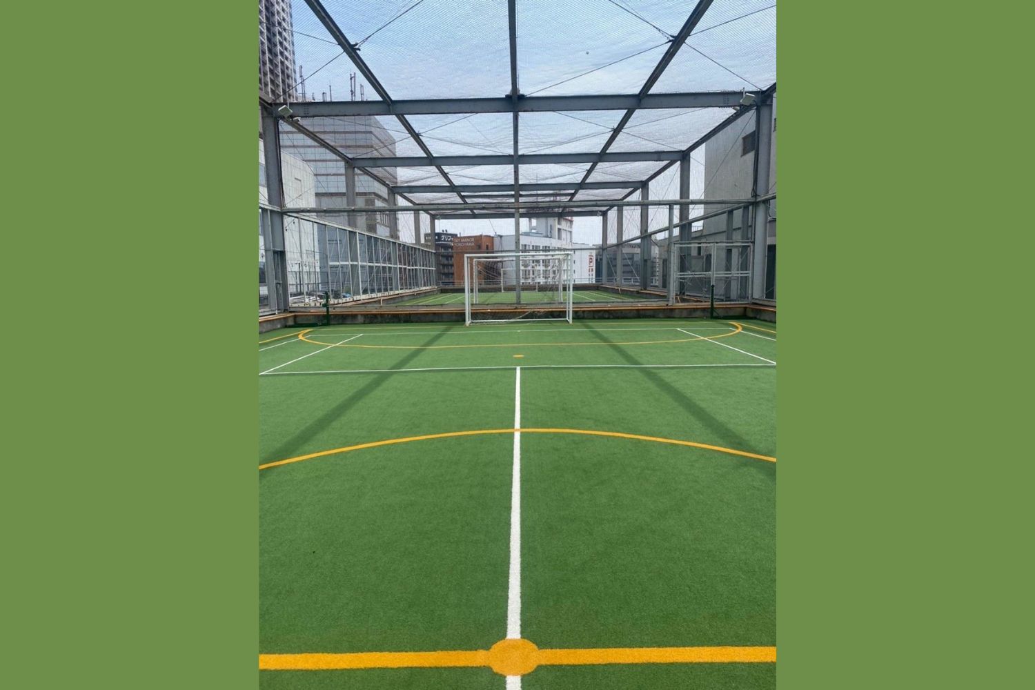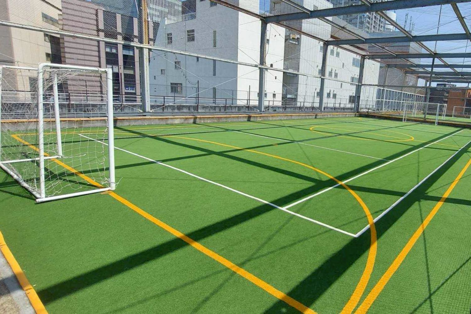フットサルコートが2面とかけっこエリアを併設するビル屋上のスポーツコート