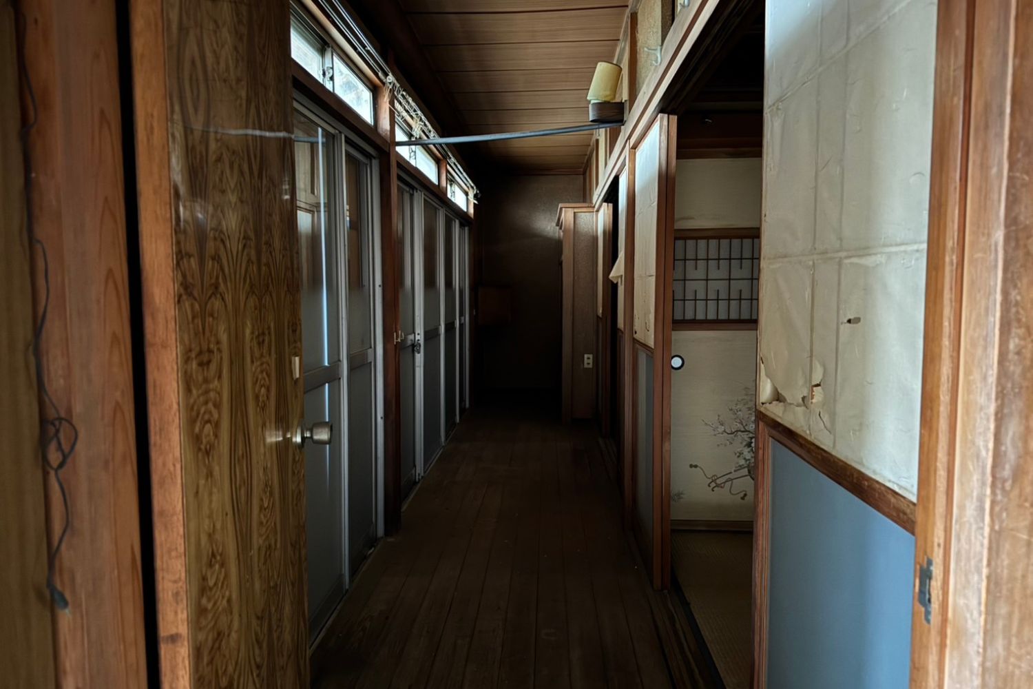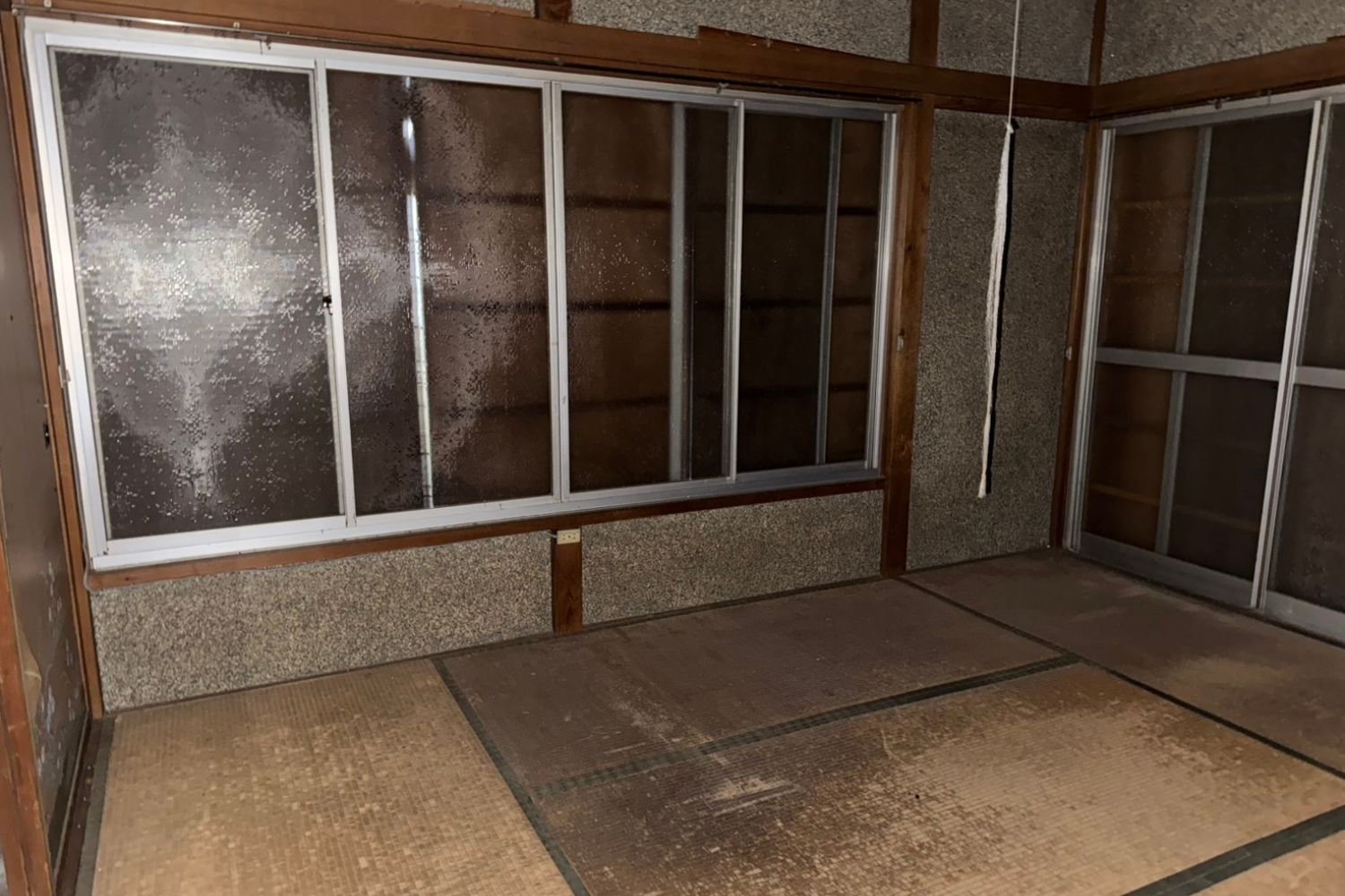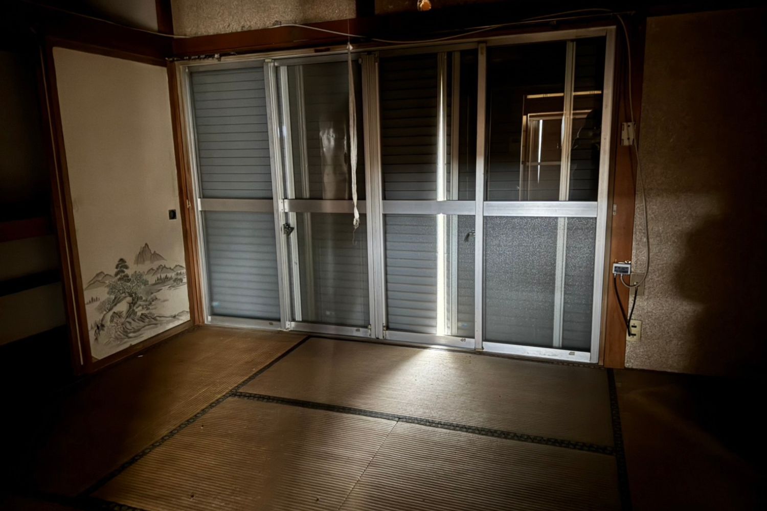 雑草が生い茂る広い駐車場と庭を持ちわせる、廃れた室内が雰囲気抜群の廃墟一軒家