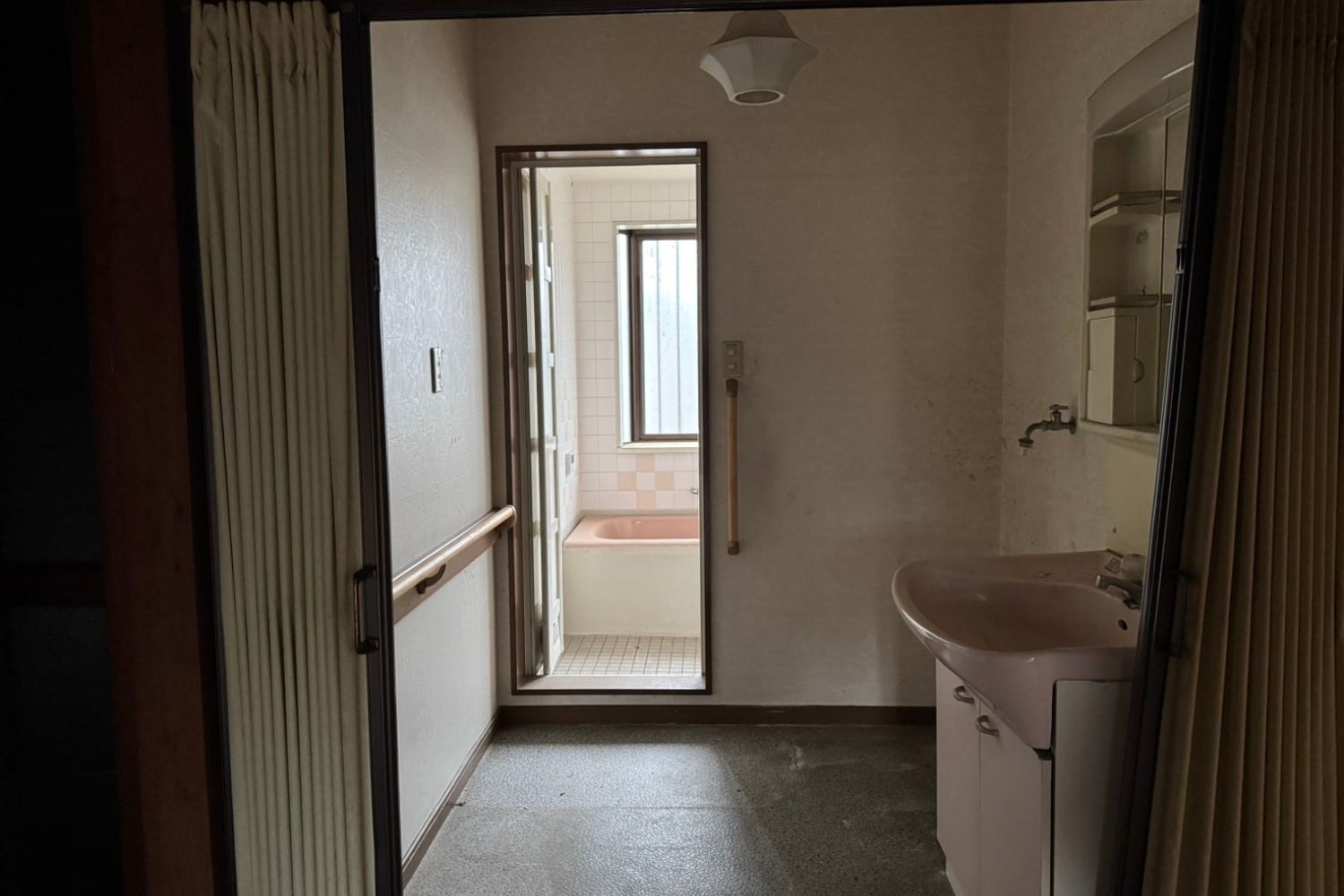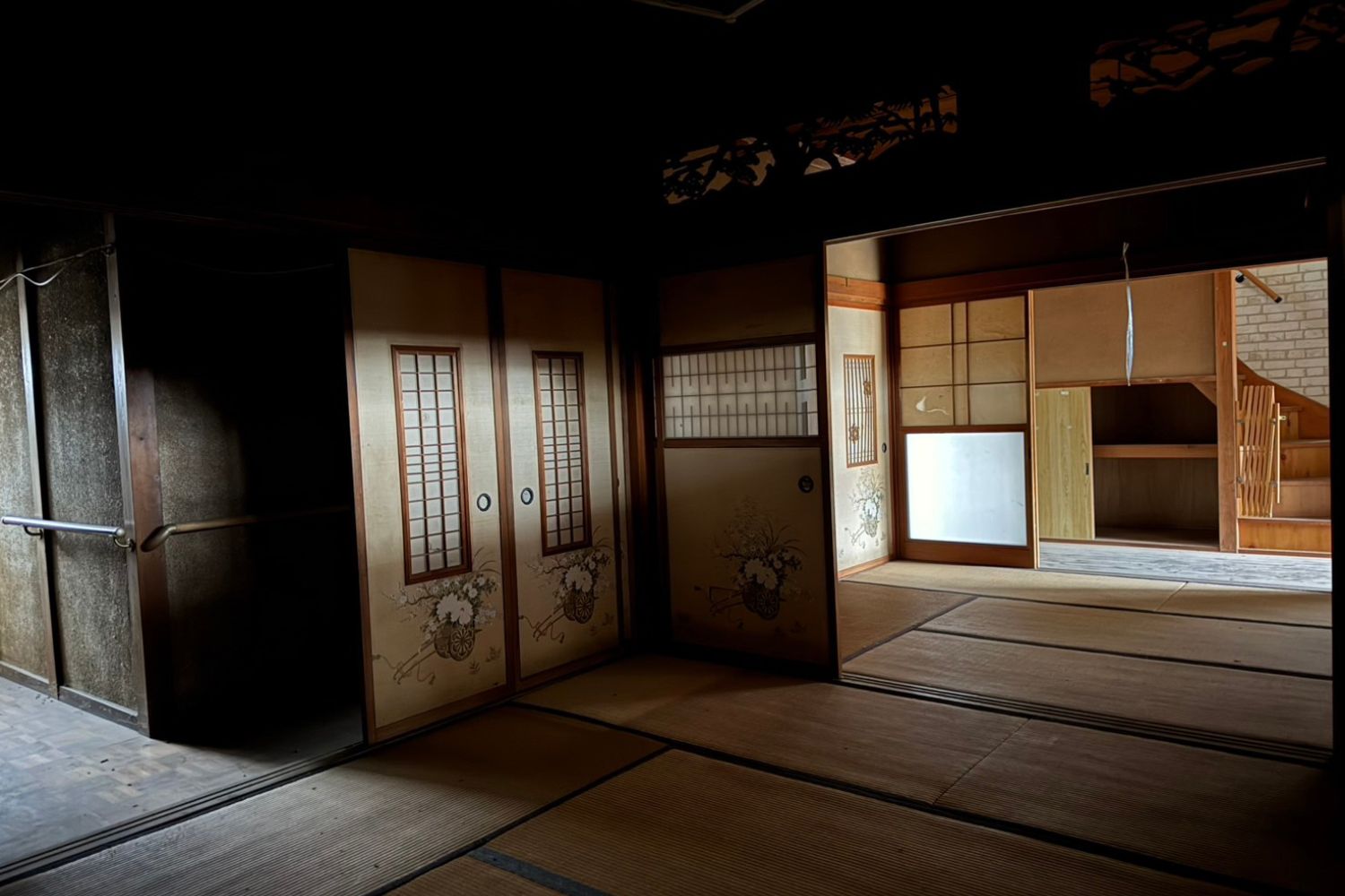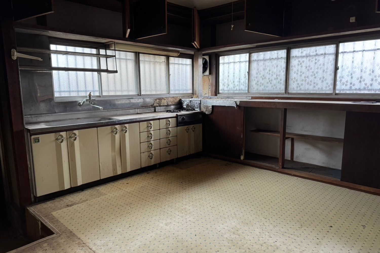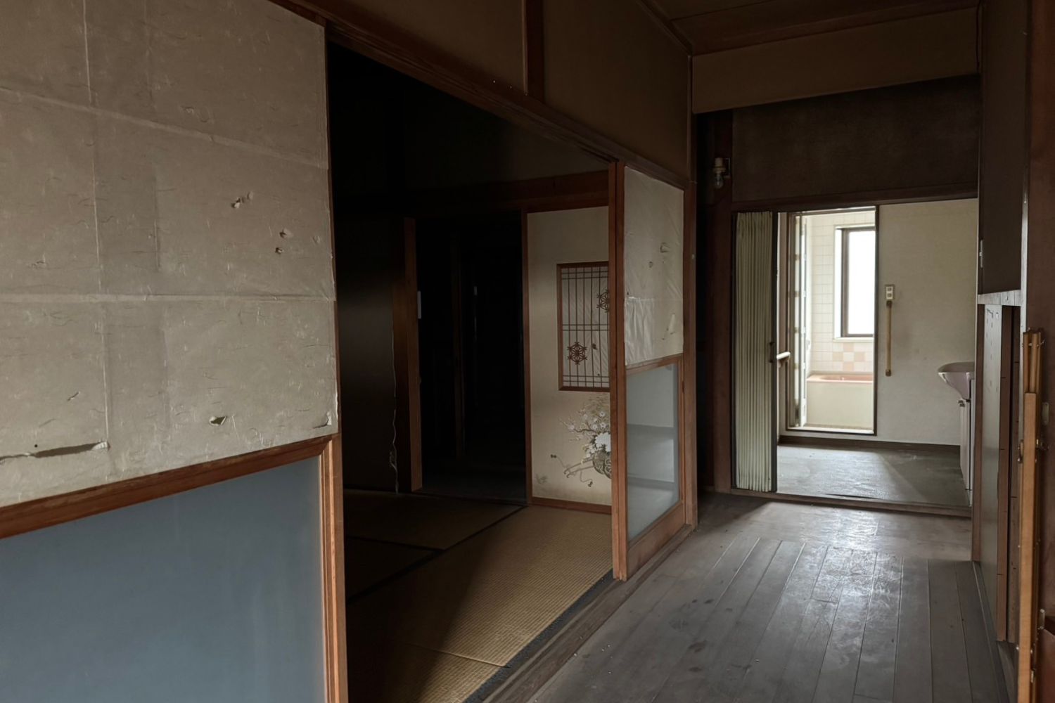 雑草が生い茂る広い駐車場と庭を持ちわせる、廃れた室内が雰囲気抜群の廃墟一軒家