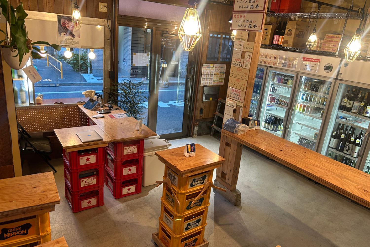 日本酒とワインを主軸に、クラフトビールや焼酎、生活に馴染んだ瓶ビールや缶酎ハイなども取り揃え、古き良き時代の雰囲気を残した角打ち居酒屋です。