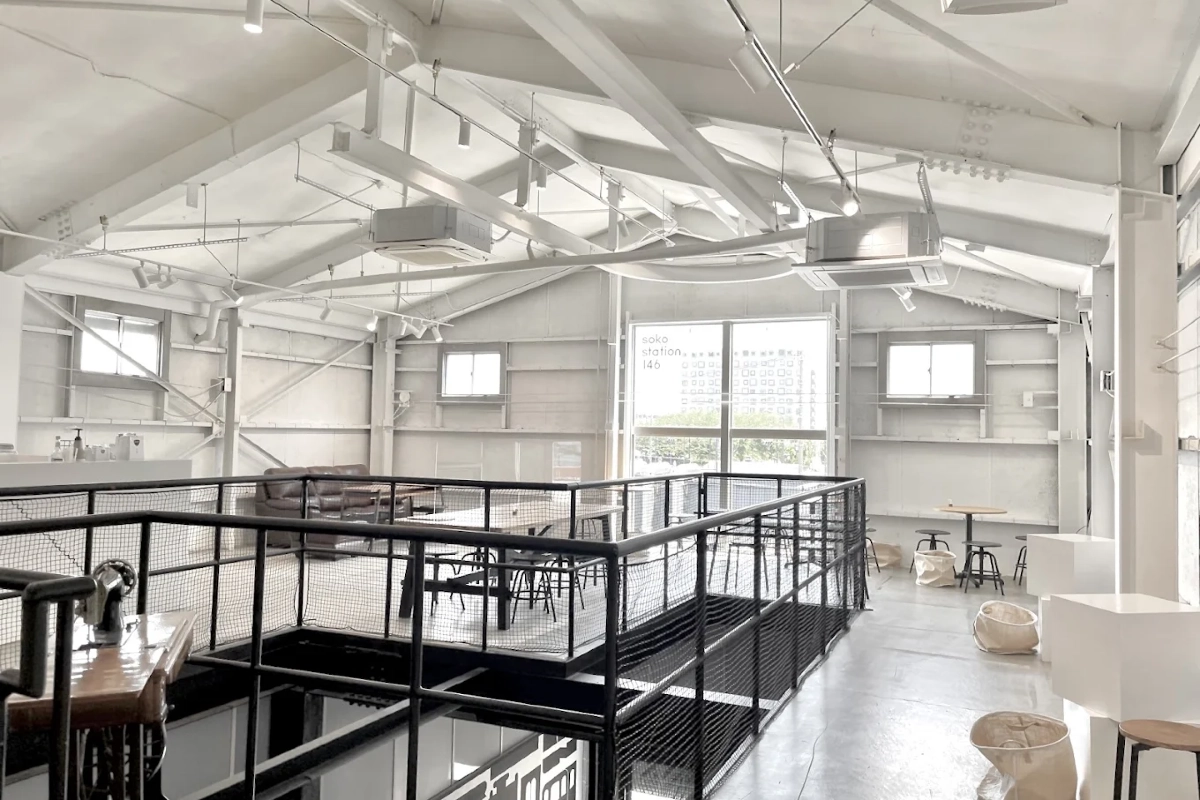 インダストリアルな外観に相反し、黒いアイアンの階段を登った先には天井高4mの広さを持つ木材倉庫をリノベーションし洗練された店内が広がります。カフェをメインに営業し、時には展示会場・撮影スペース・ポップアップ店舗としてさまざまなクリエイティブ空間に変身します。集まる / 繋がる / 生まれる さまざまなモノ・コトが集まるクリエーション・プラットフォーム。