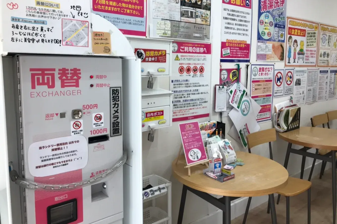 ドリップ珈琲マシンやWi-Fiフリーを備える町のコインランドリー