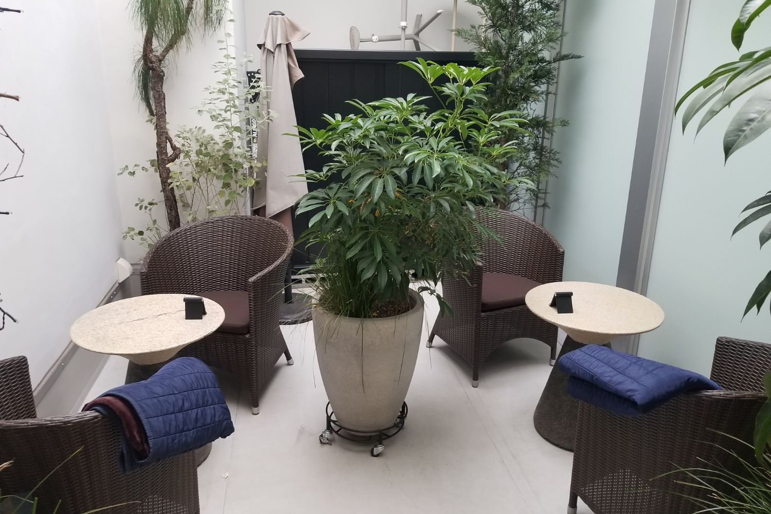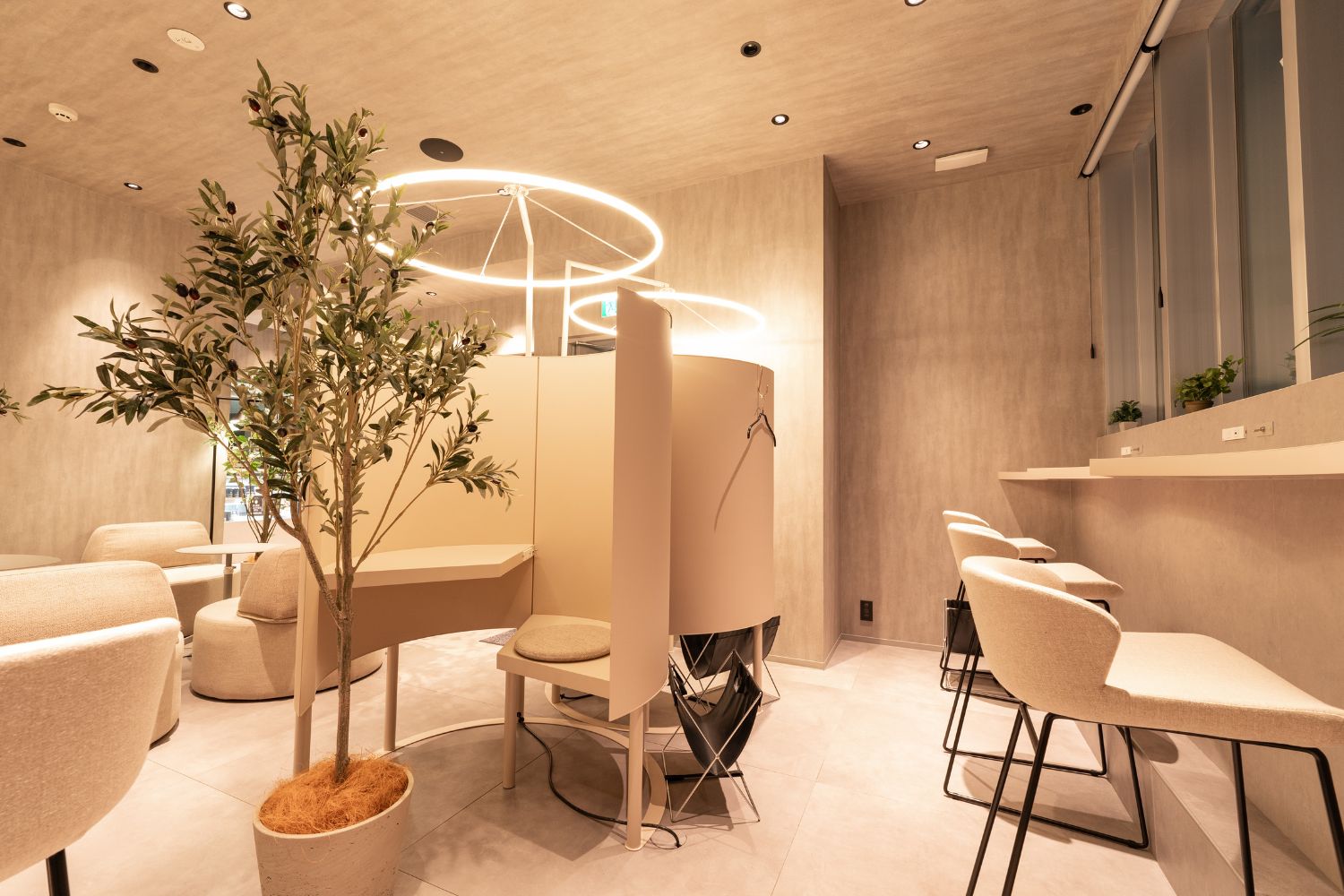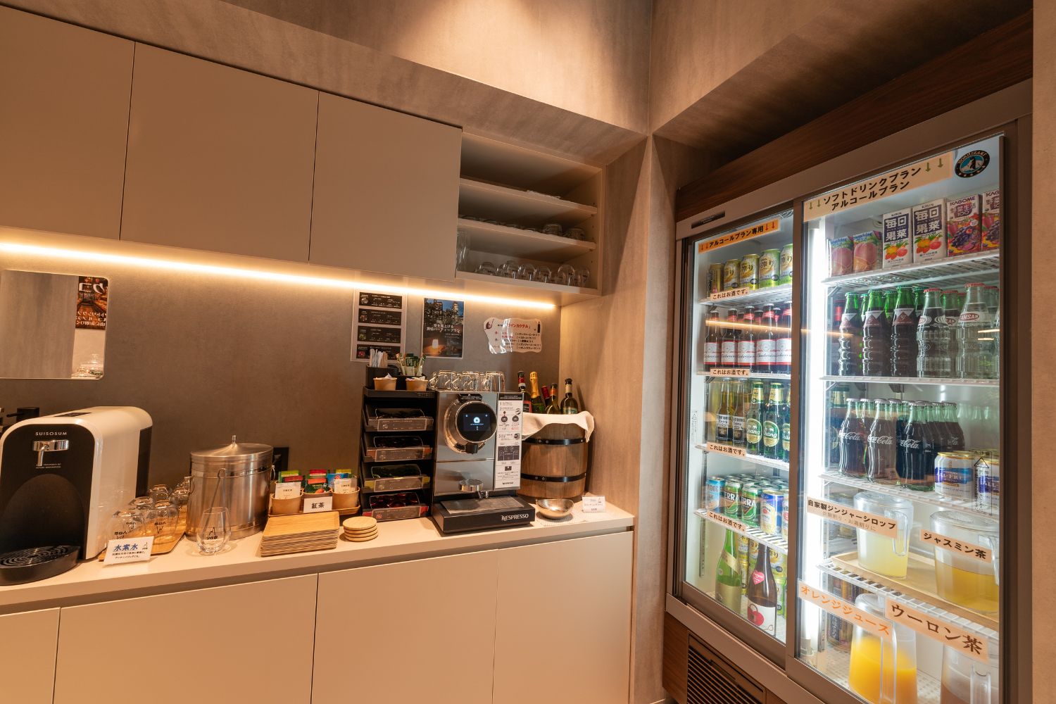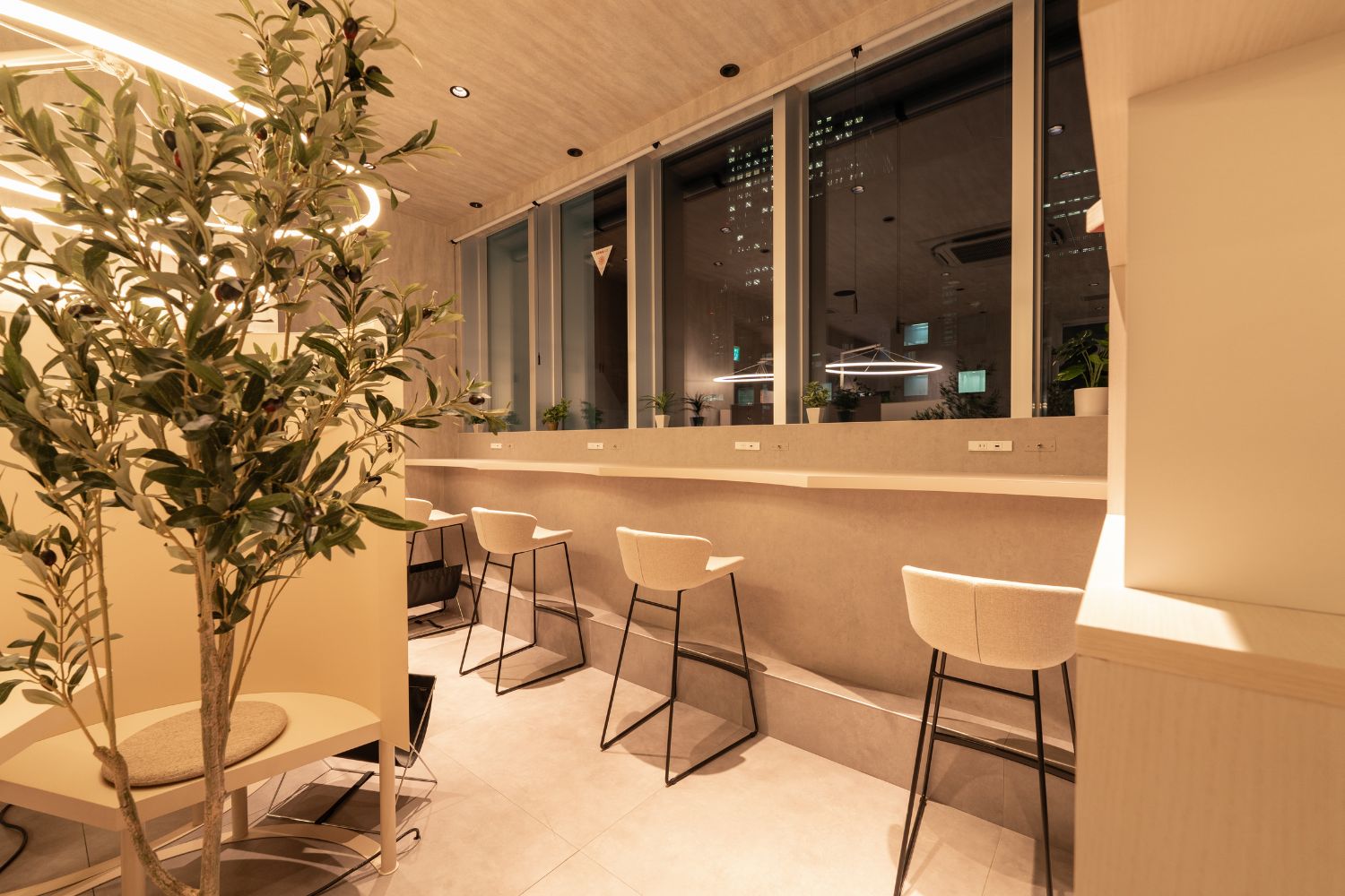 屋上スペースだけでなく、室内にカフェラウンジ、吹き抜けテラス席もご用意しています。コーヒーメーカーや水素水マシンのほか、ワイン、海外ビールなどオールインクルーシブでご利用できます。また腸内細菌が喜ぶカレー"腸活 野菜カレー”も提供しております。ワーキングスペース、カフェでの撮影も可能で、屋上を併用することで、多彩なシーンがまとめ撮りできます。お気軽にお問い合わせください。