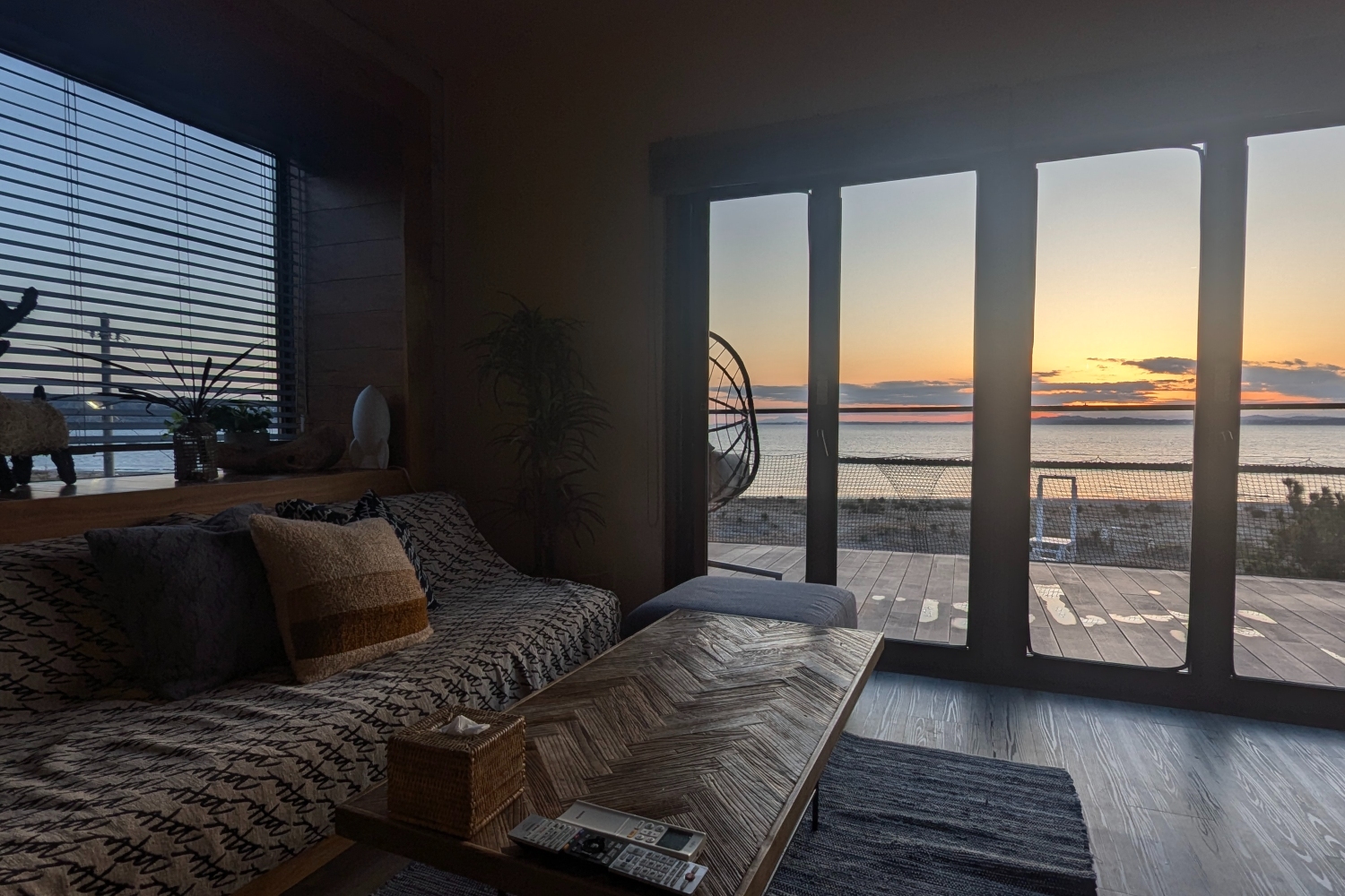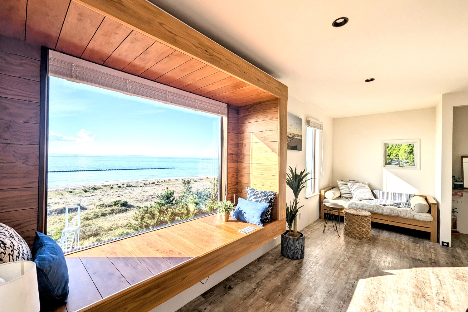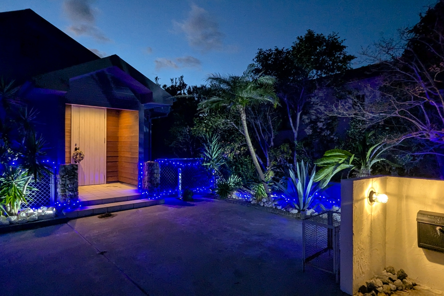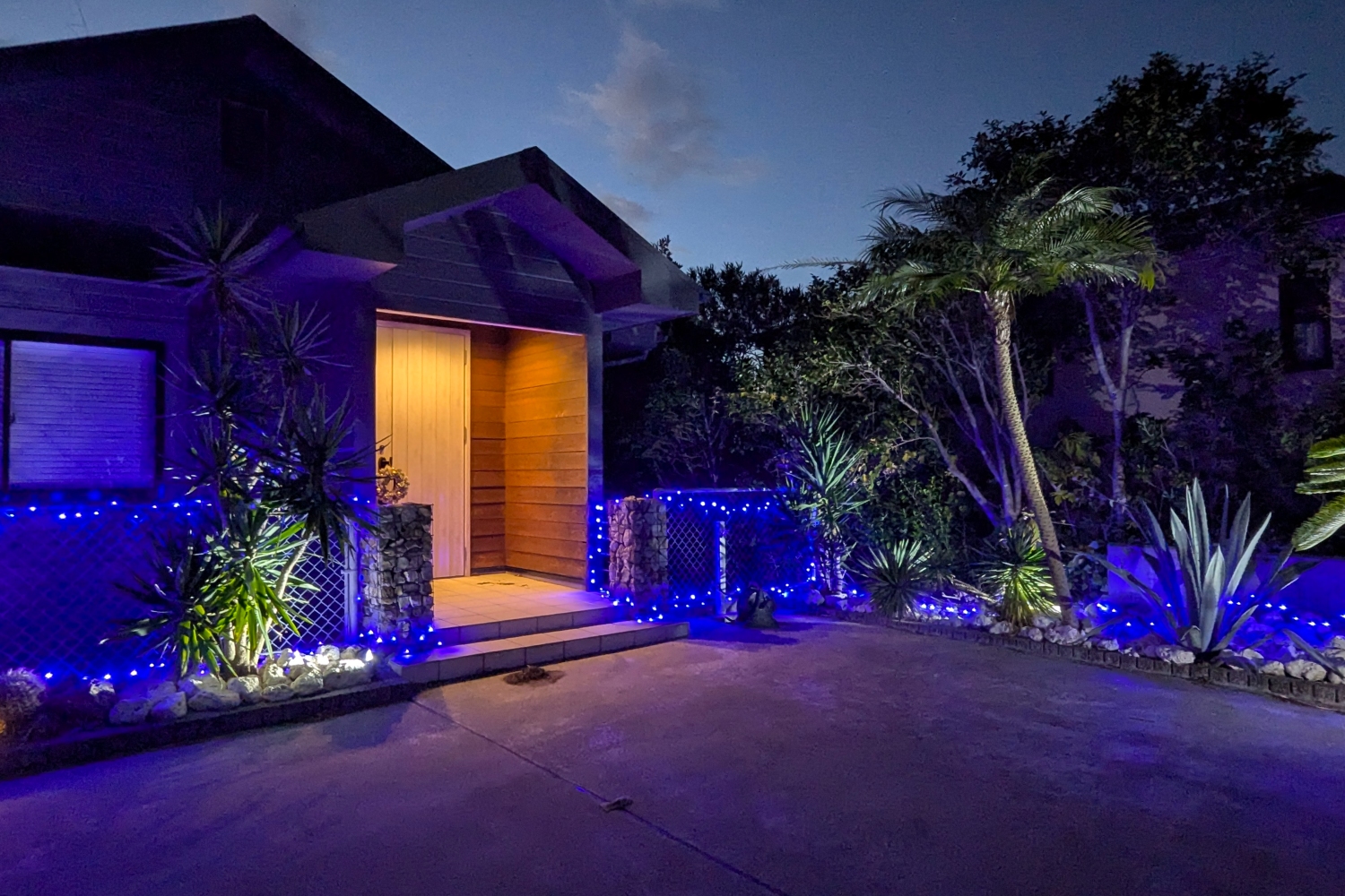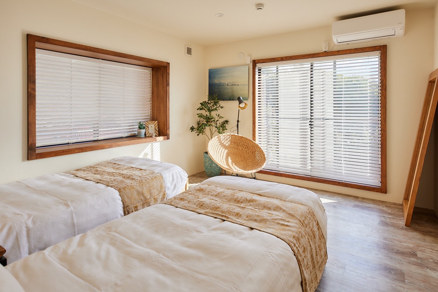 庭から海まで直結で唯一無二の時間を味わえる一棟貸切別荘です。オーシャンフロントに位置するヴィラからは、どこまでも続く水平線と波打ち際の美しい景色がパノラマに広がります。大きな窓から差し込む陽光が室内を明るく照らし、穏やかな時間を演出します。波の音をBGMに、贅沢なひとときをお過ごしください。