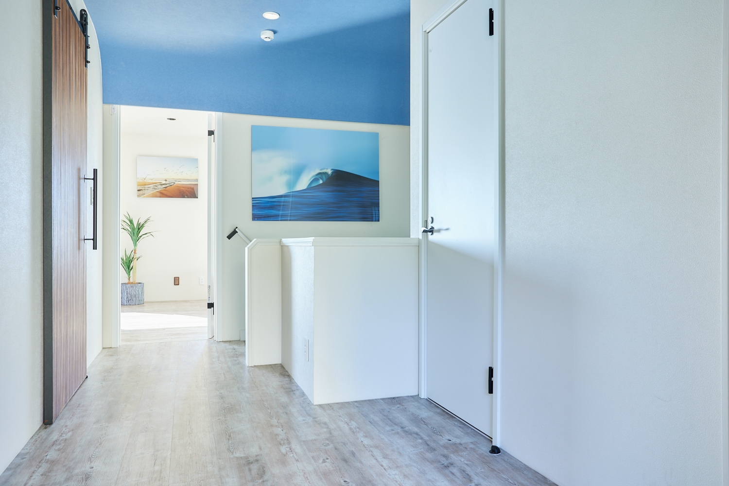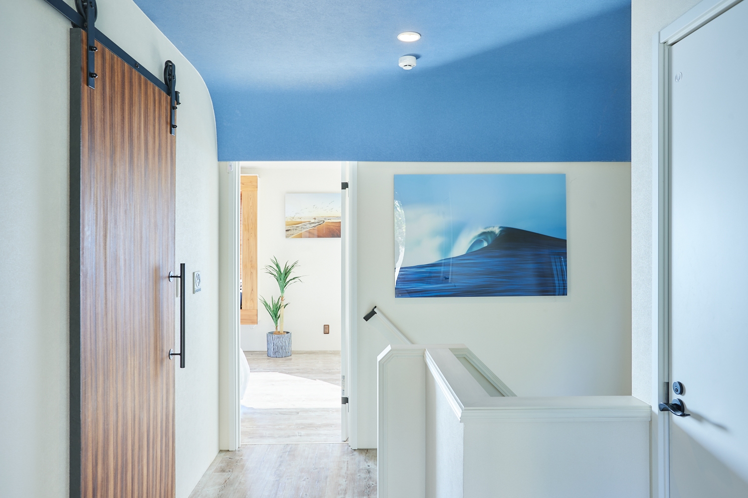 白と青を貴重したオシャレな海の家をイメージした室内です。開放的な大きな窓を開けると、気持ちのいい潮風が流れ込みます。人工物が視界に入らない絶景パノラマをリビング・ベッドルームから望め、まるでプライベートビーチ感覚です。バルコニーやドッグランエリアもあり、豊富なアングルからカットを狙えるのも喜ばれるポイントです。充実したキッチン設備もございますので、料理・レシピ系の撮影でもおすすめです。