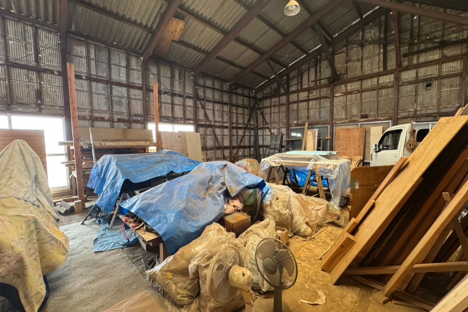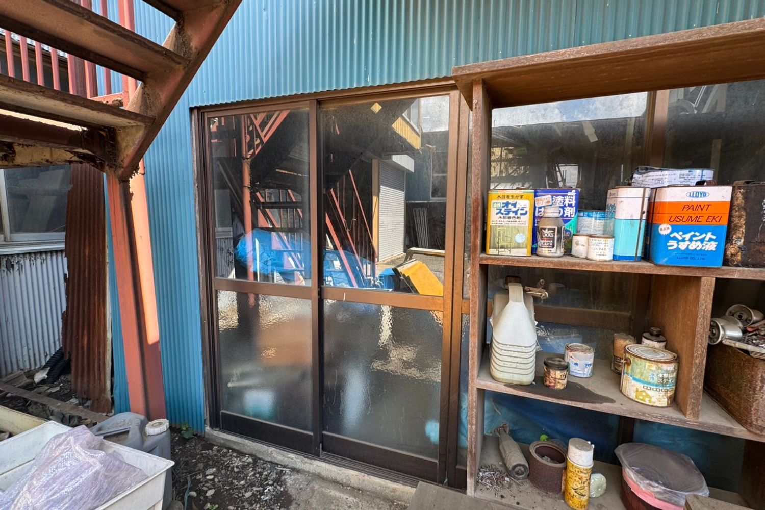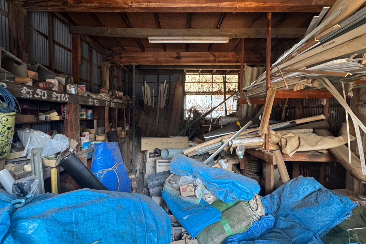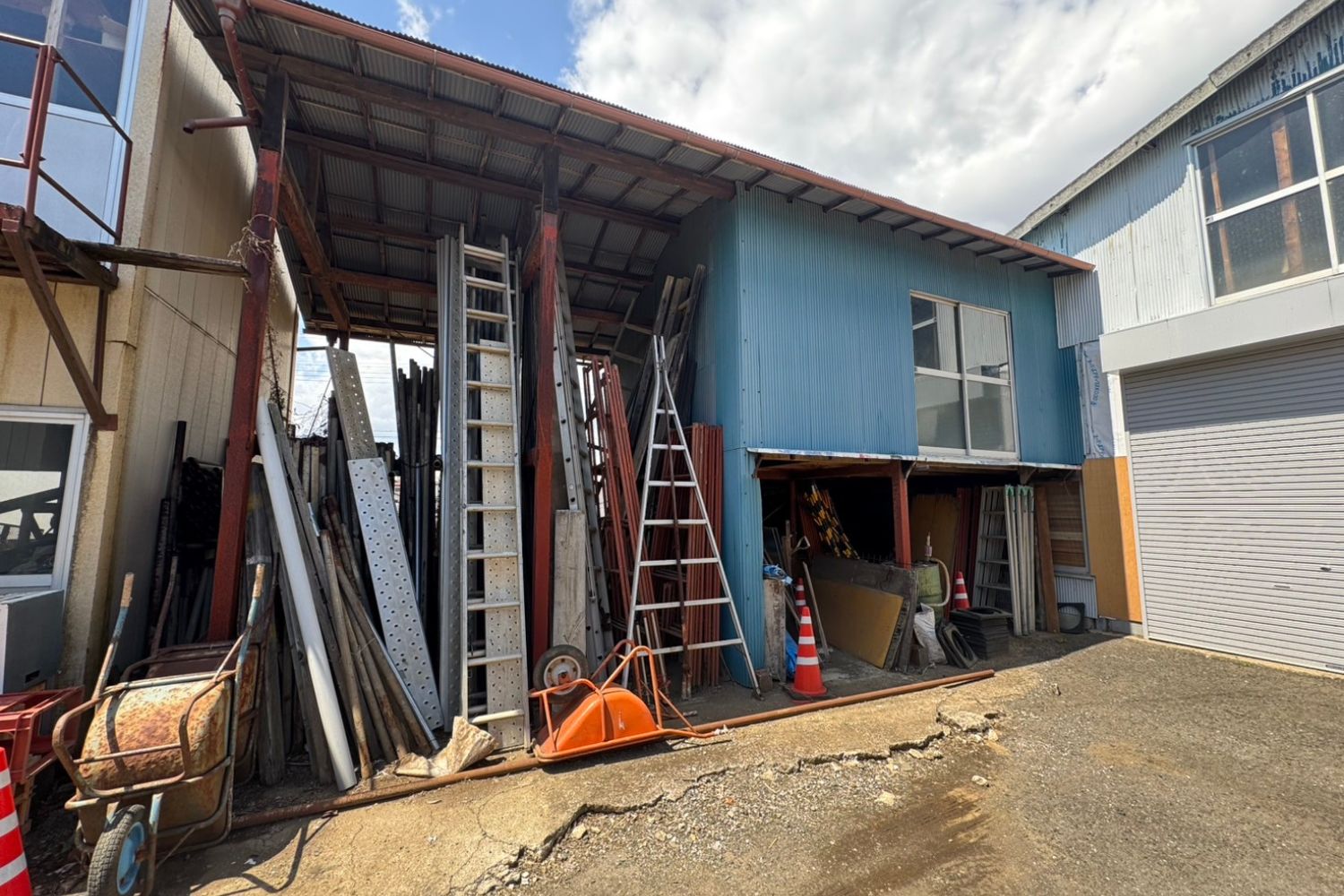 資材や鉄パイプ、足場などが置かれる建設会社の倉庫
