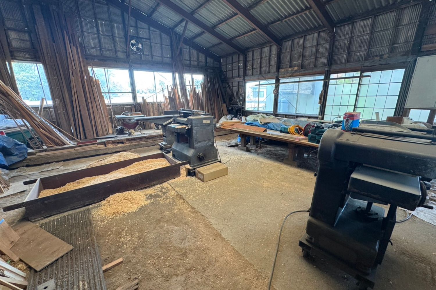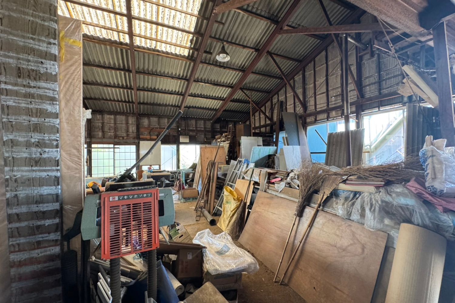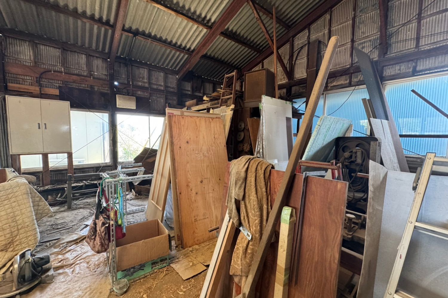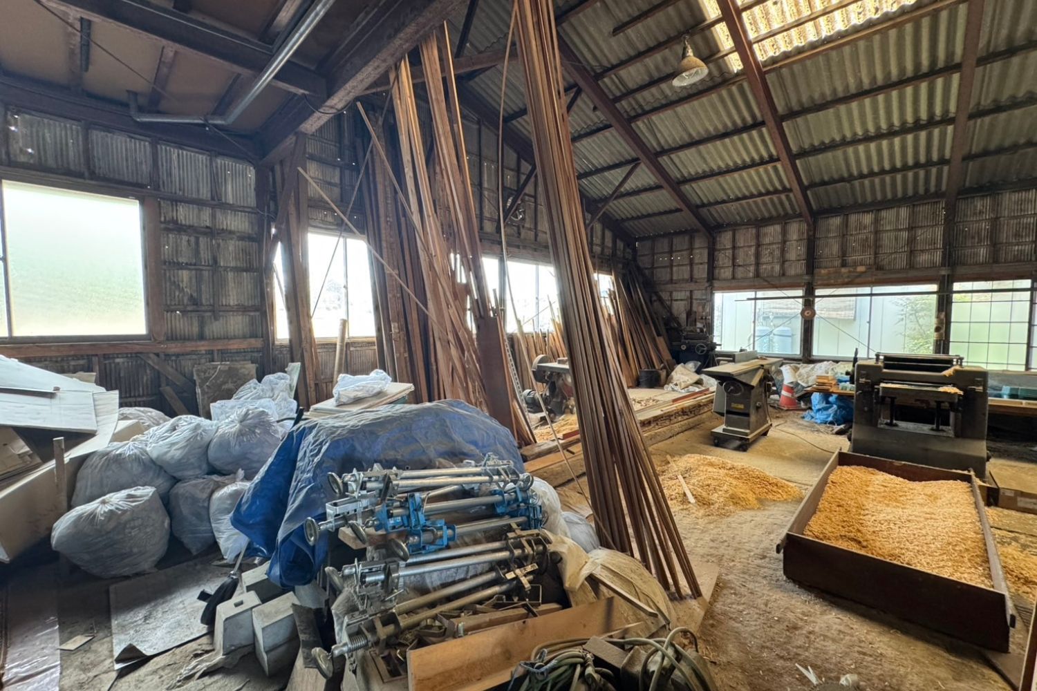 資材や鉄パイプ、足場などが置かれる建設会社の倉庫