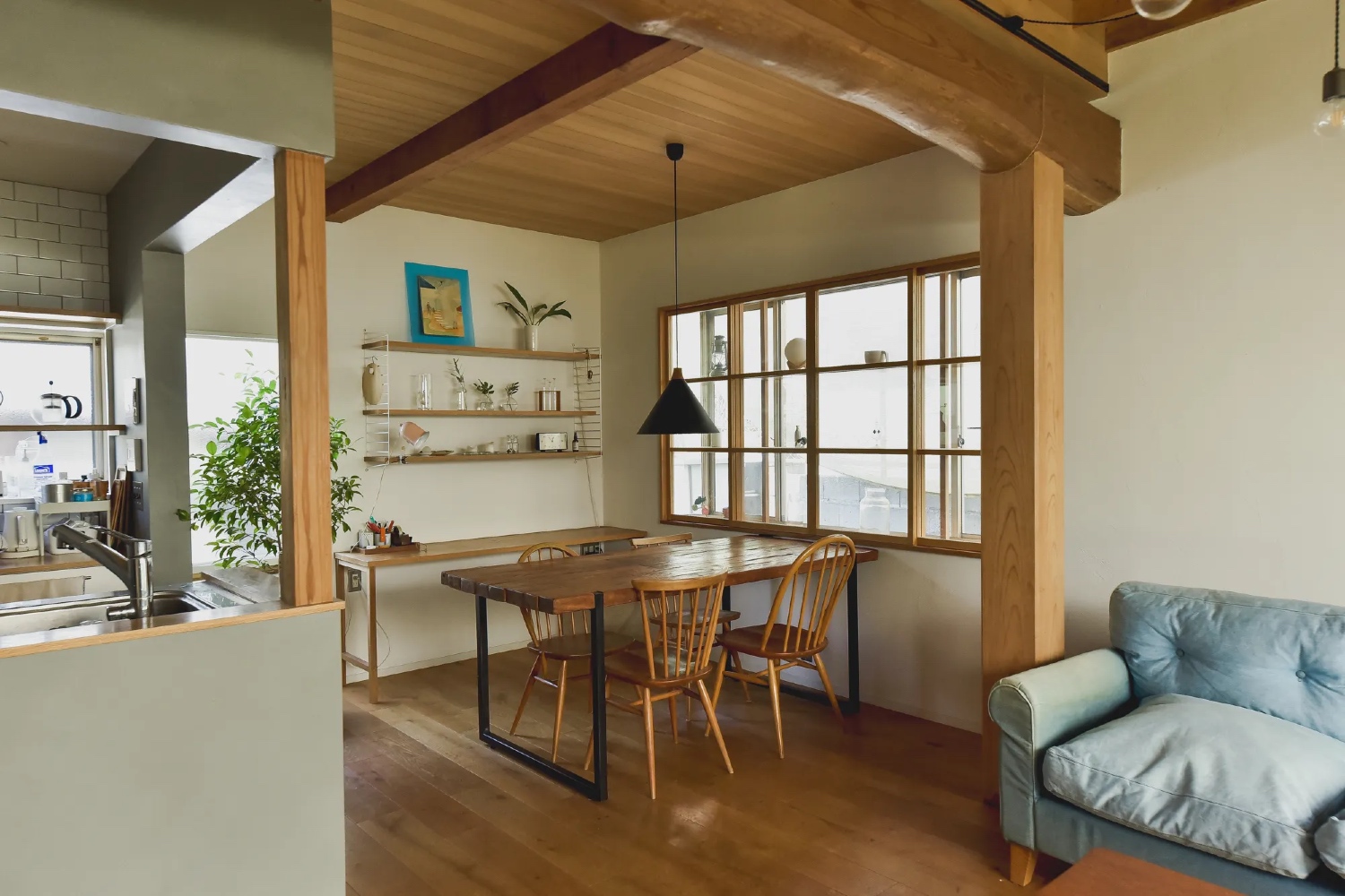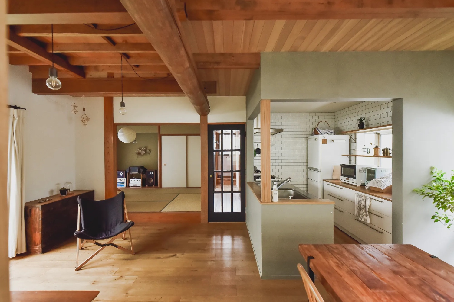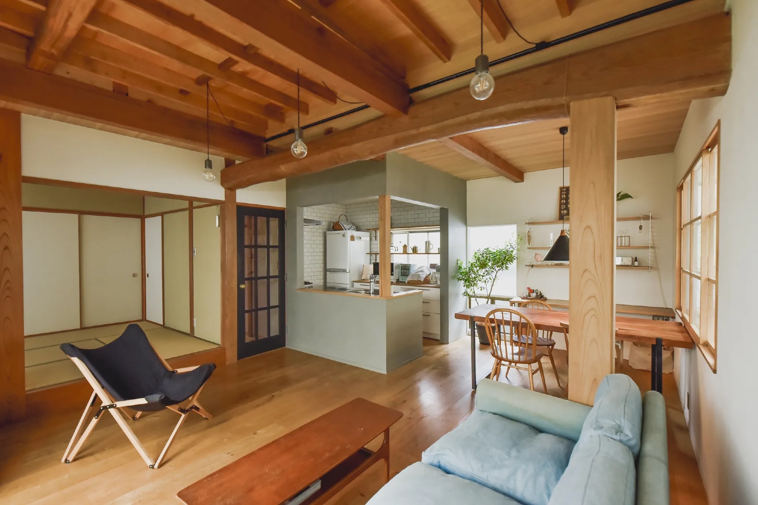 都心から車で四十分ほどの、多摩市にある古民家スタジオ。細部の造りにまでこだわった、デザイン性の高い住宅ですが、奇をてらうことのないそのさりげなさが、居心地の良さを演出してくれます。今日ではなかなか見かけない、大きな梁が渡されたリビングや、掘りごたつと雪見障子の小上がりの和室は、家族や友人との団欒の時間を、ゆったりと豊かなものにしてくれます。そんな、心温まるハウスシーンや、自然光を生かした撮影に。