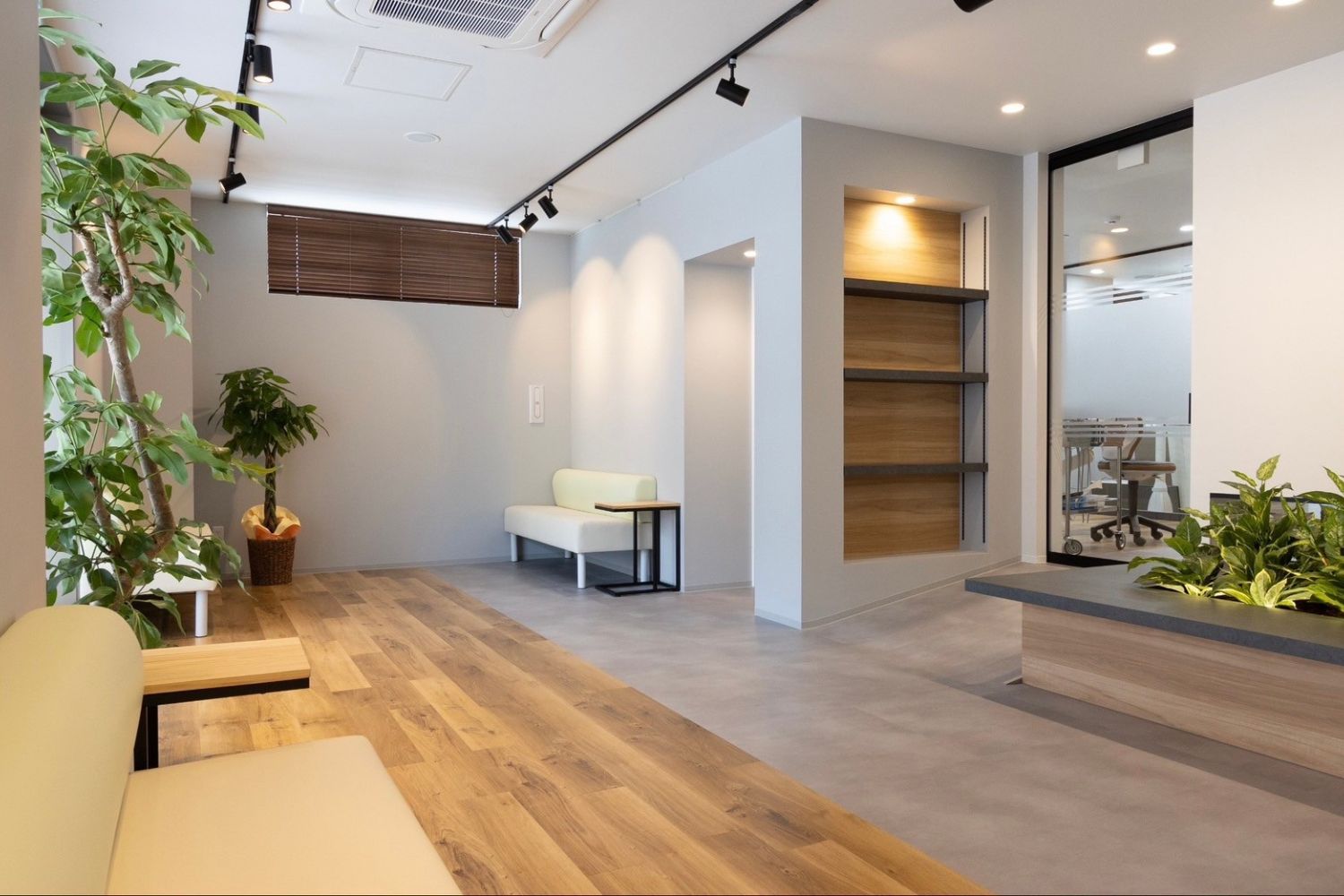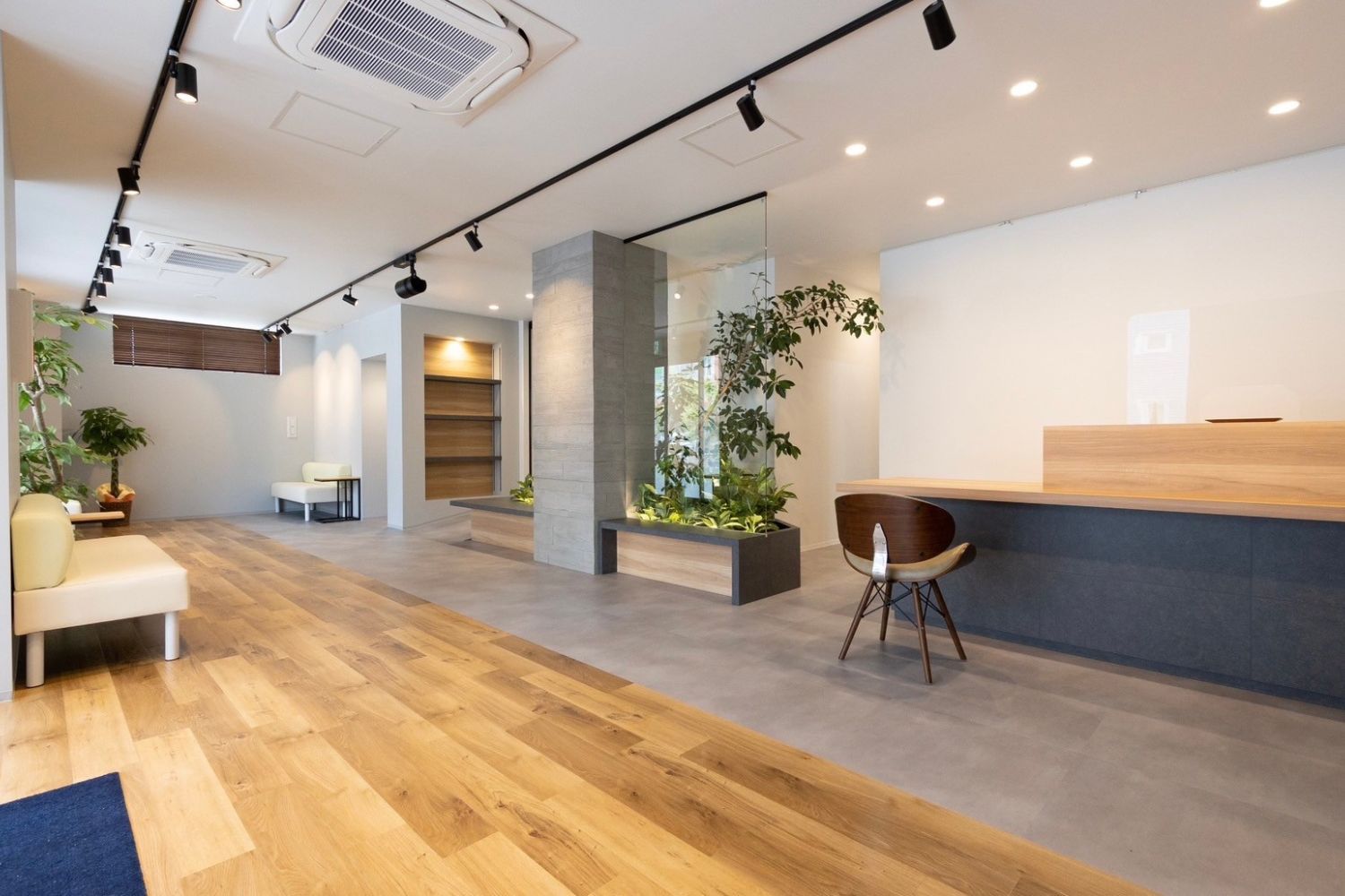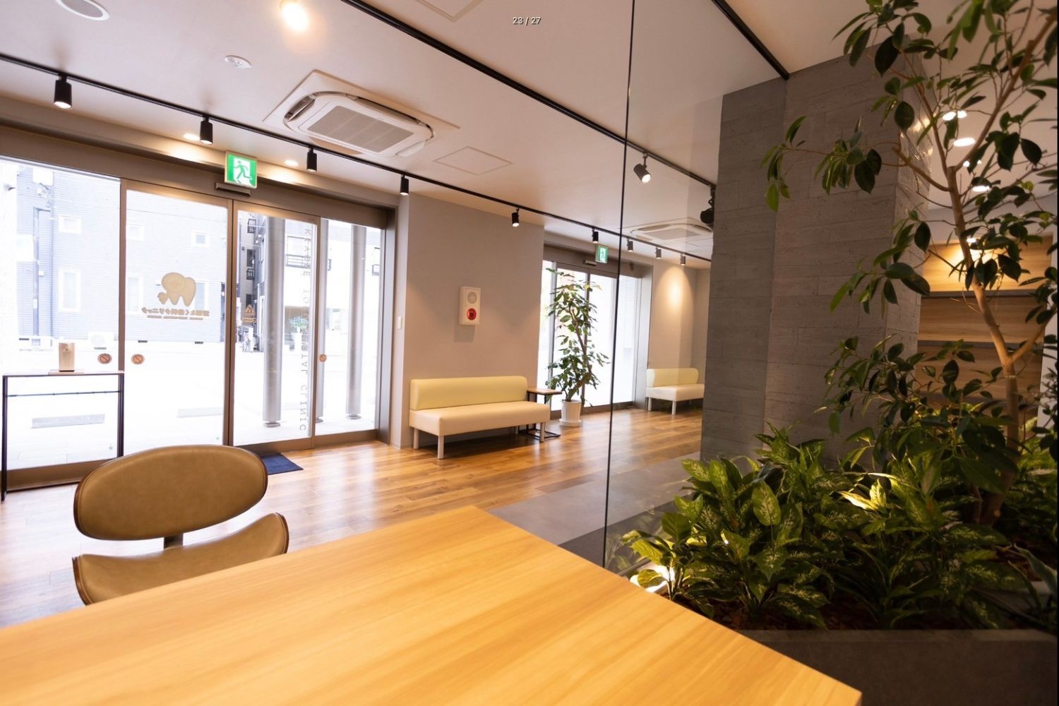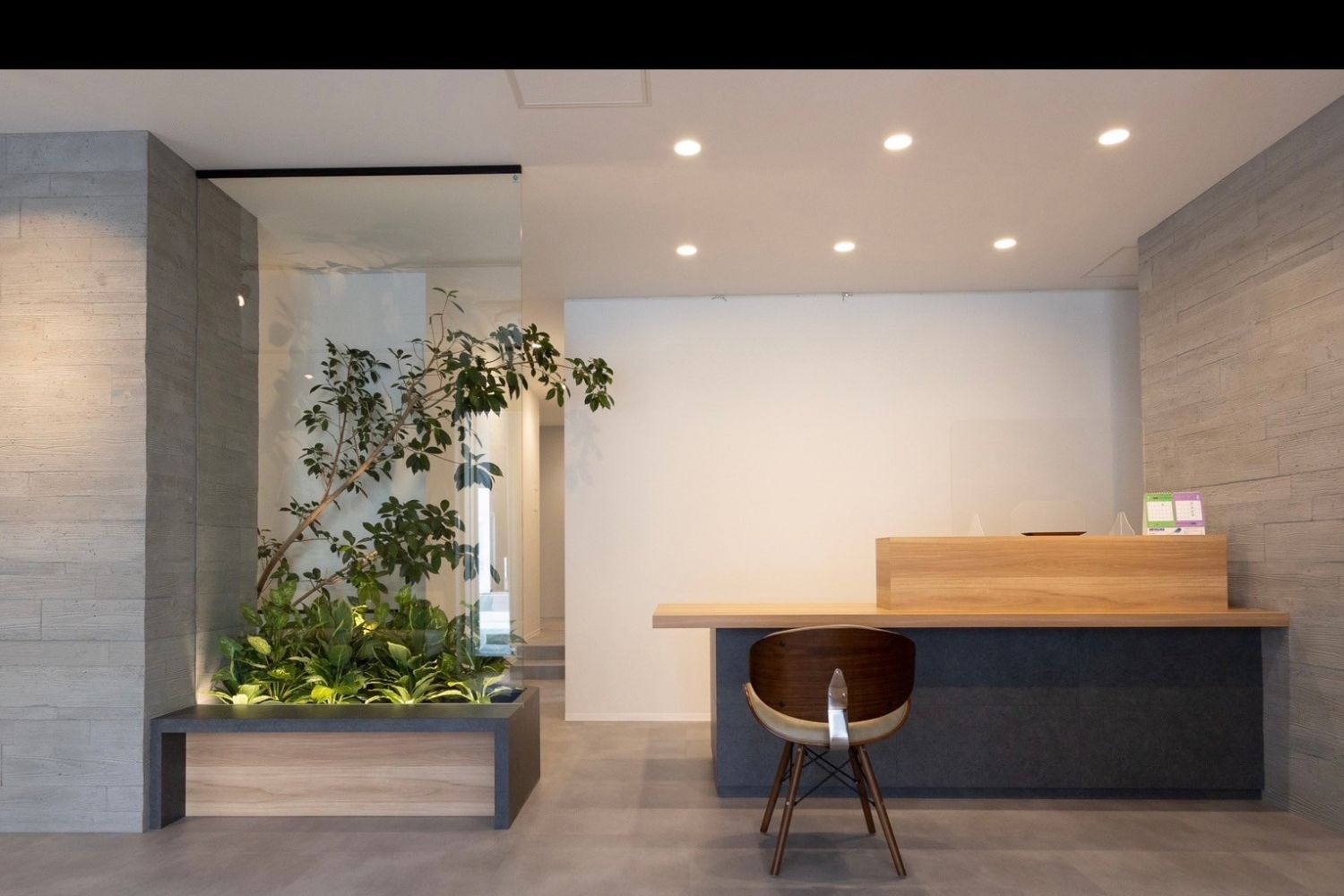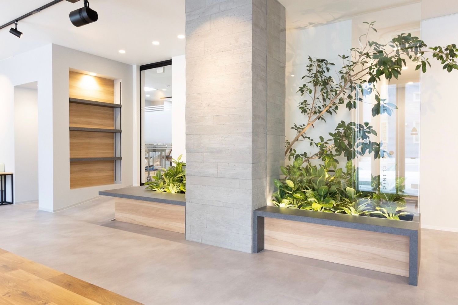 木のぬくもりと観葉植物がオシャレな空間を作る、完全バリアフリーの広々開放的な歯科クリニック