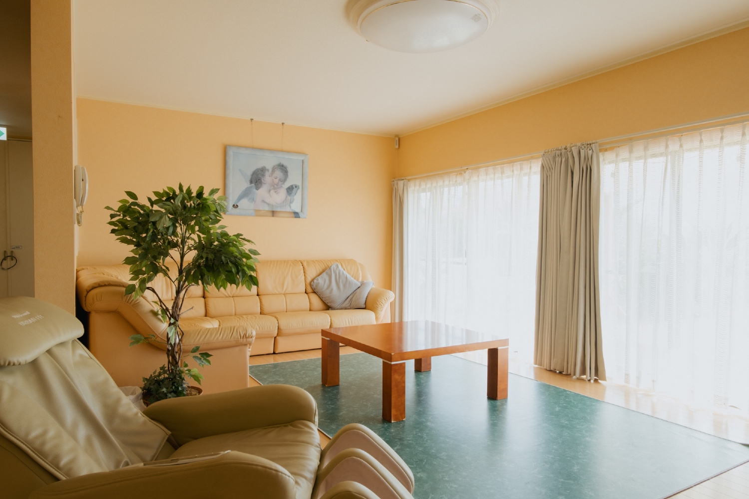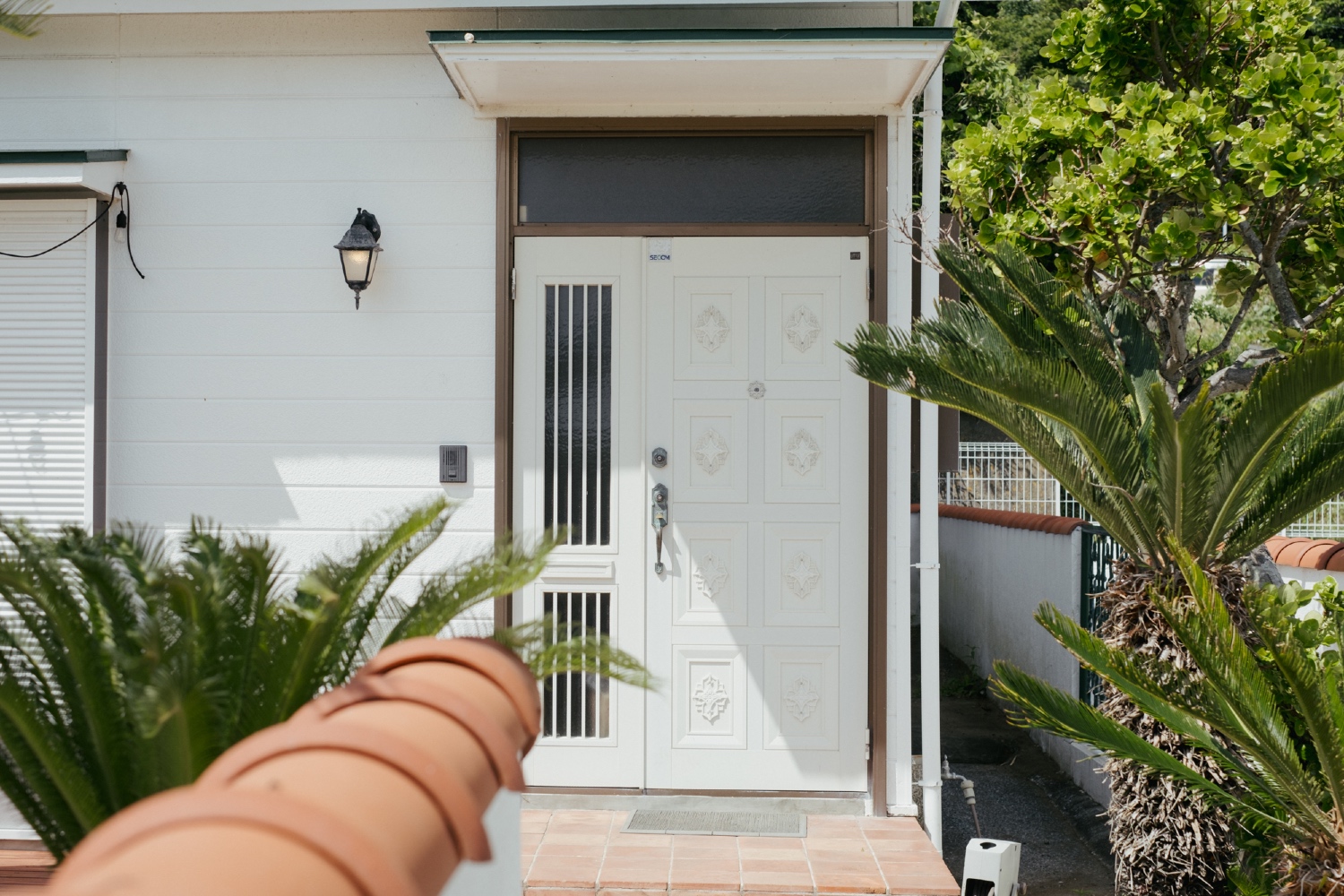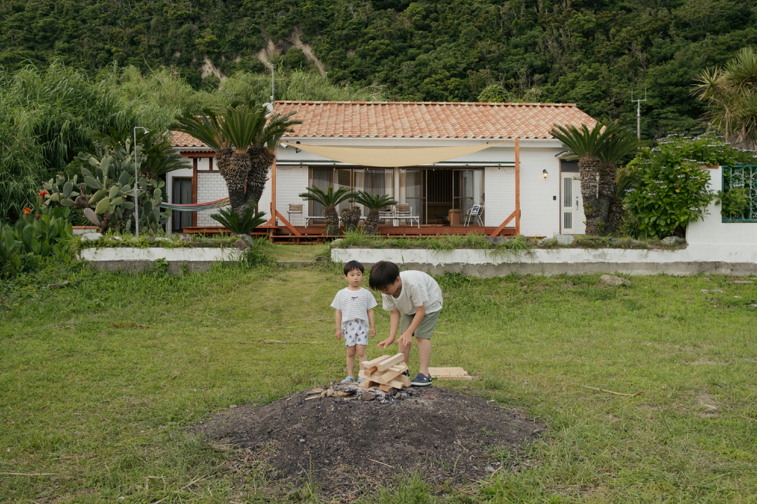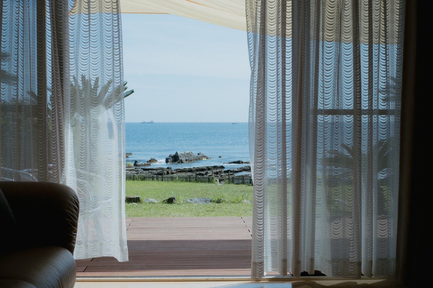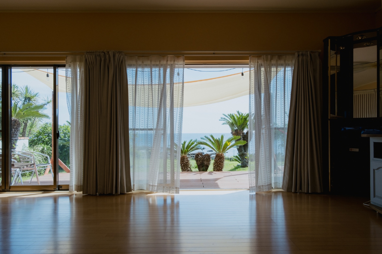 海を独り占めできる圧倒的なロケーションが自慢の貸別荘です。落ち着いた平家で、リビング、寝室だけでなく、12畳の和室も完備。広い庭も自慢で、南国の植物、ヤシの木や気持ちのいい自然にも囲まれています。リビングから覗く海、ウッドデッキから広がる海と空。海の青と、自然の緑、建物の温もりが1カットに収まります。ドラマ、映画、CM、MVなどのあらゆるシーン撮影におすすめです。これまで多数の作品に協力しており、お気軽にお問い合わせください。