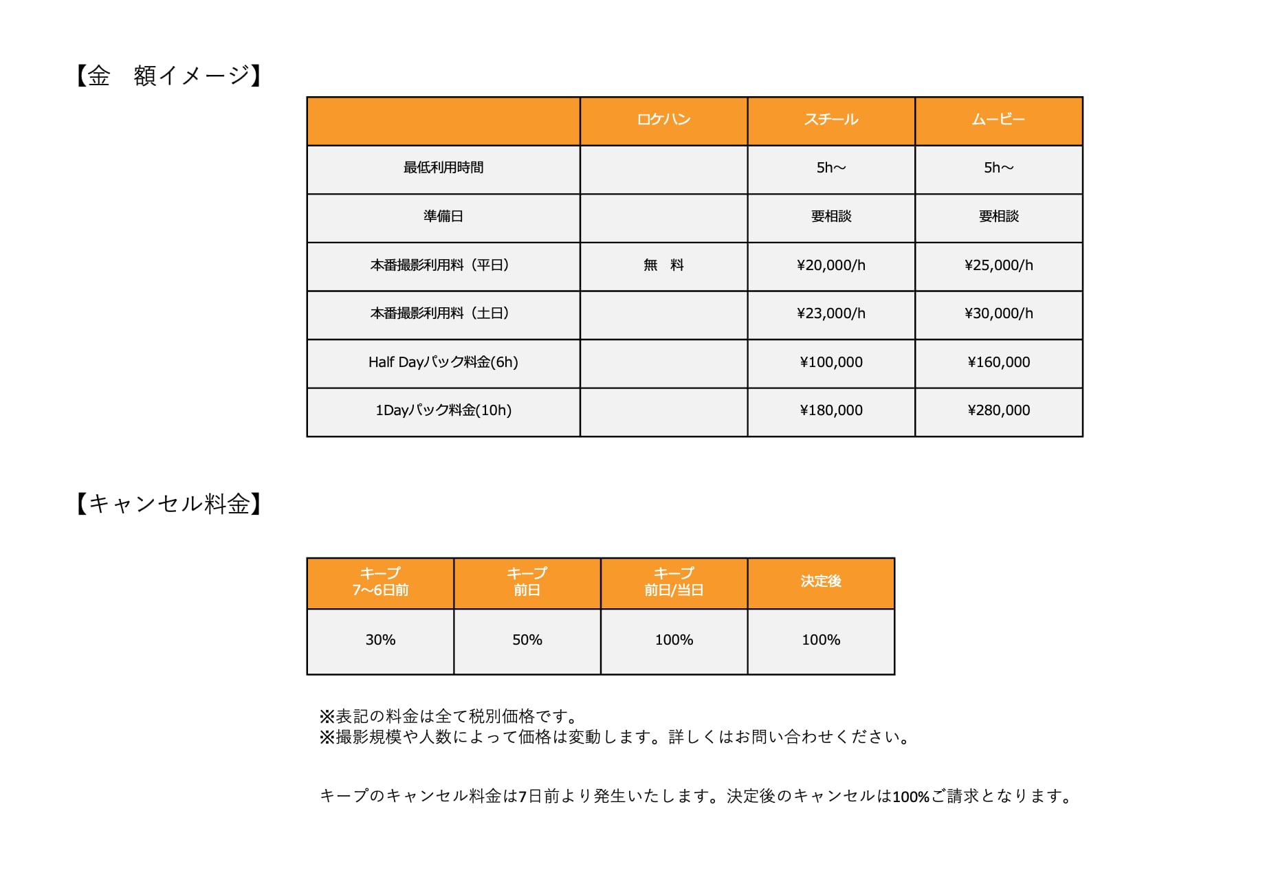 キープのキャンセル料金は7日前より発生いたします。決定後のキャンセルは100%ご請求となります。