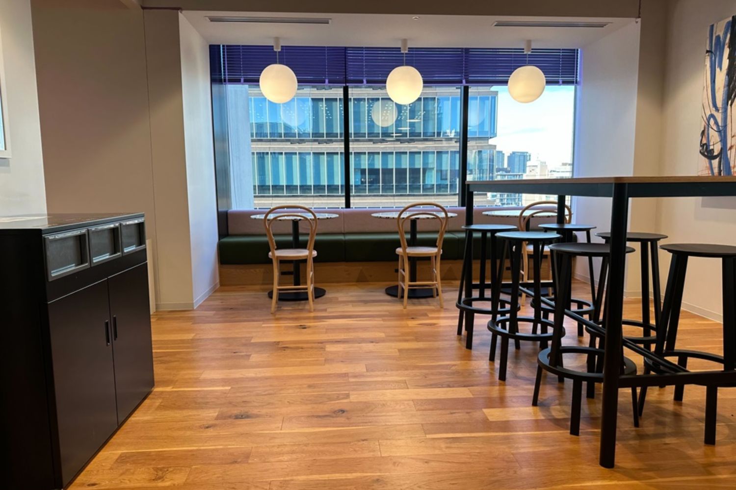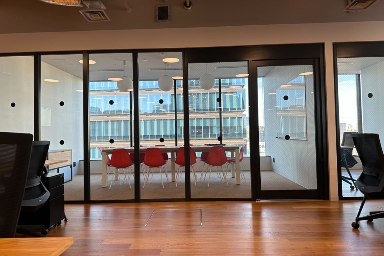 シンプルな空間で、都会のビルオフィスのイメージにぴったりなオフィススペースになります。作品やシーンが限定されない汎用性の高いロケーションになっており、美術を入れることでカスタマイズもしやすく、人気な撮影場所になっています。ドラマ、映画、CM、ネット配信作品などのシーン撮影でぜひご利用ください。