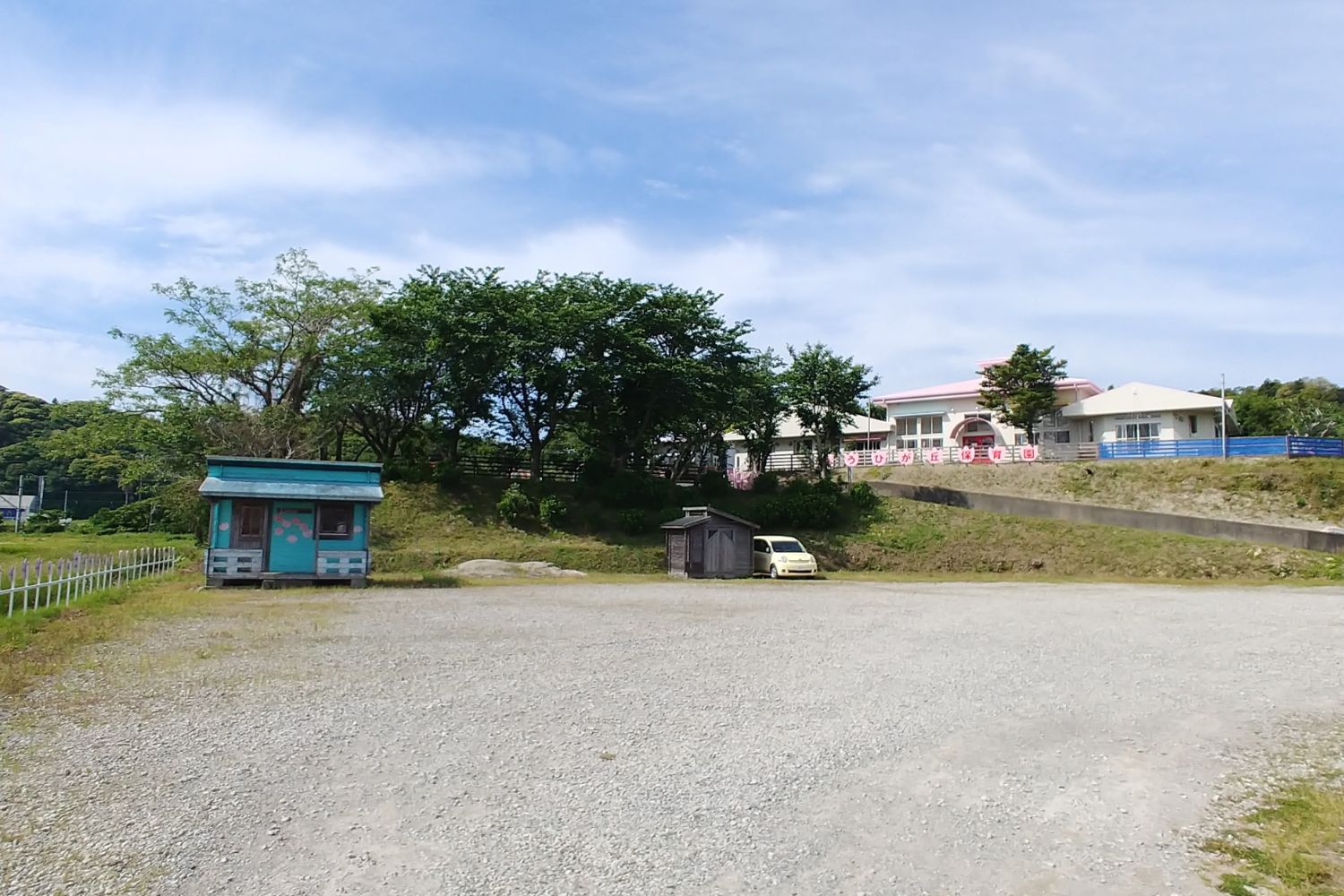 のどかな自然に囲まれた広い園庭と天井高のプレイルームを有する丘の上の保育園