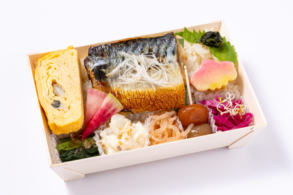 | 西京味噌に漬けた鯖を香ばしく焼き上げ、彩り豊かな副菜を添えました。 おなかだけでなく、心まで満たすお弁当を目指しています。 |